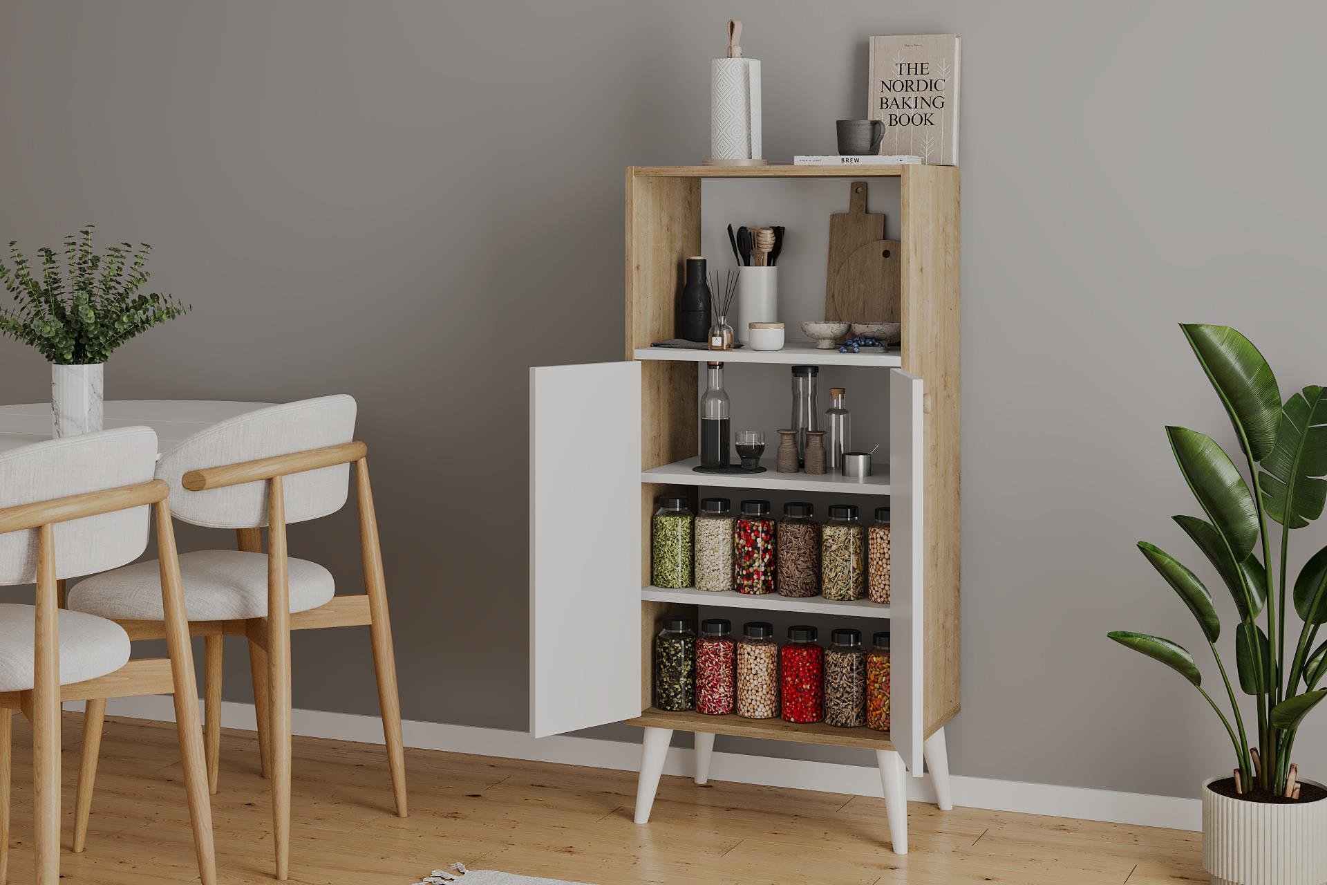 Освен затворениот простор за складирање, благодарение на отворените полици ви помага да ги чувате вашите предмети организирано и достапно.