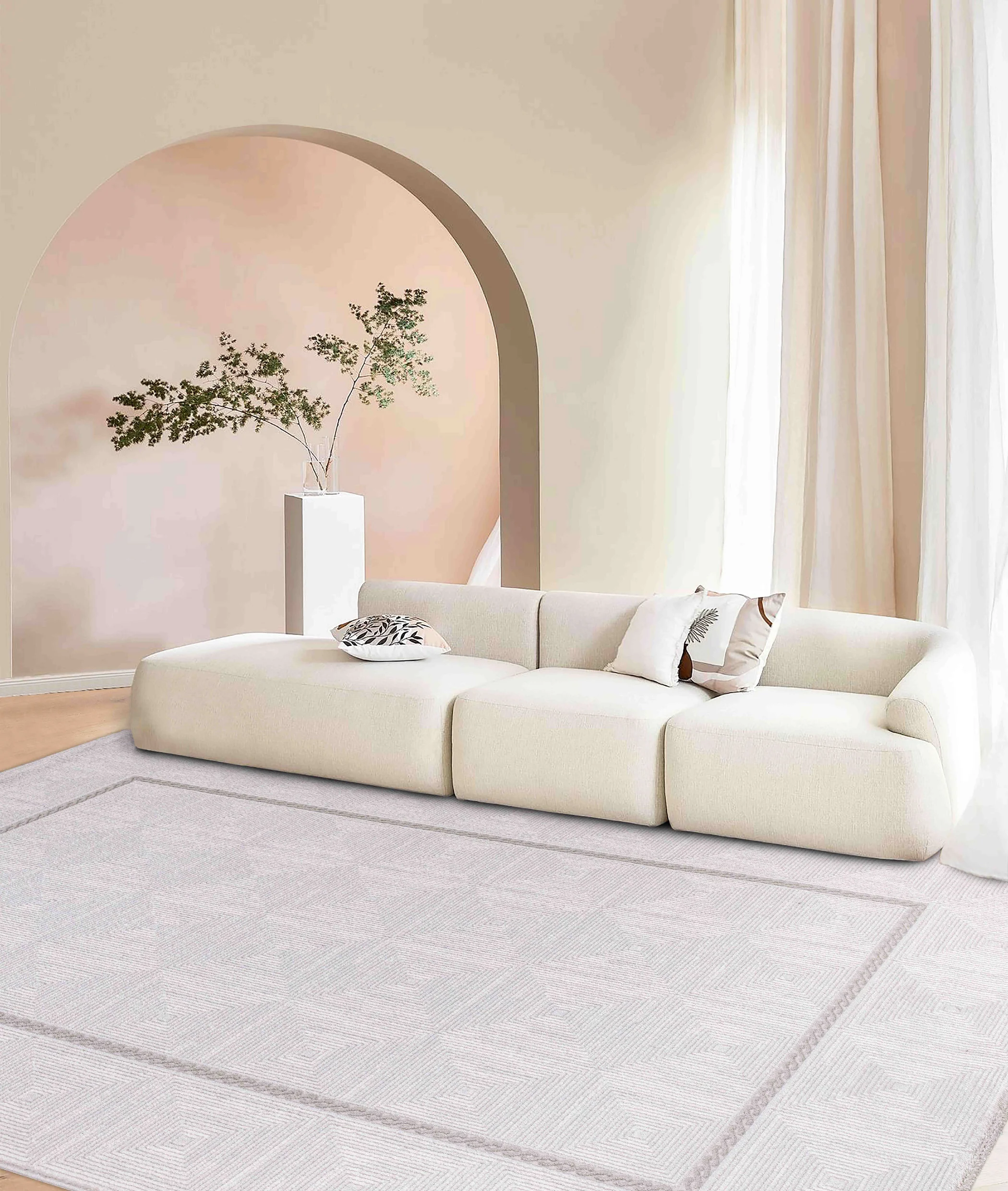 Дизајниран инспириран од природната текстура на песок, сивиот тепих Hayad Kilyos додава топлина на животните простори со својата мека акрилна структура и текстура слична на волна. Овој тепих е произведен со висина на влакното од 11 мм и густина на плетење од 440.000 јазли, комбинирајќи елегантен изглед со издржливост.