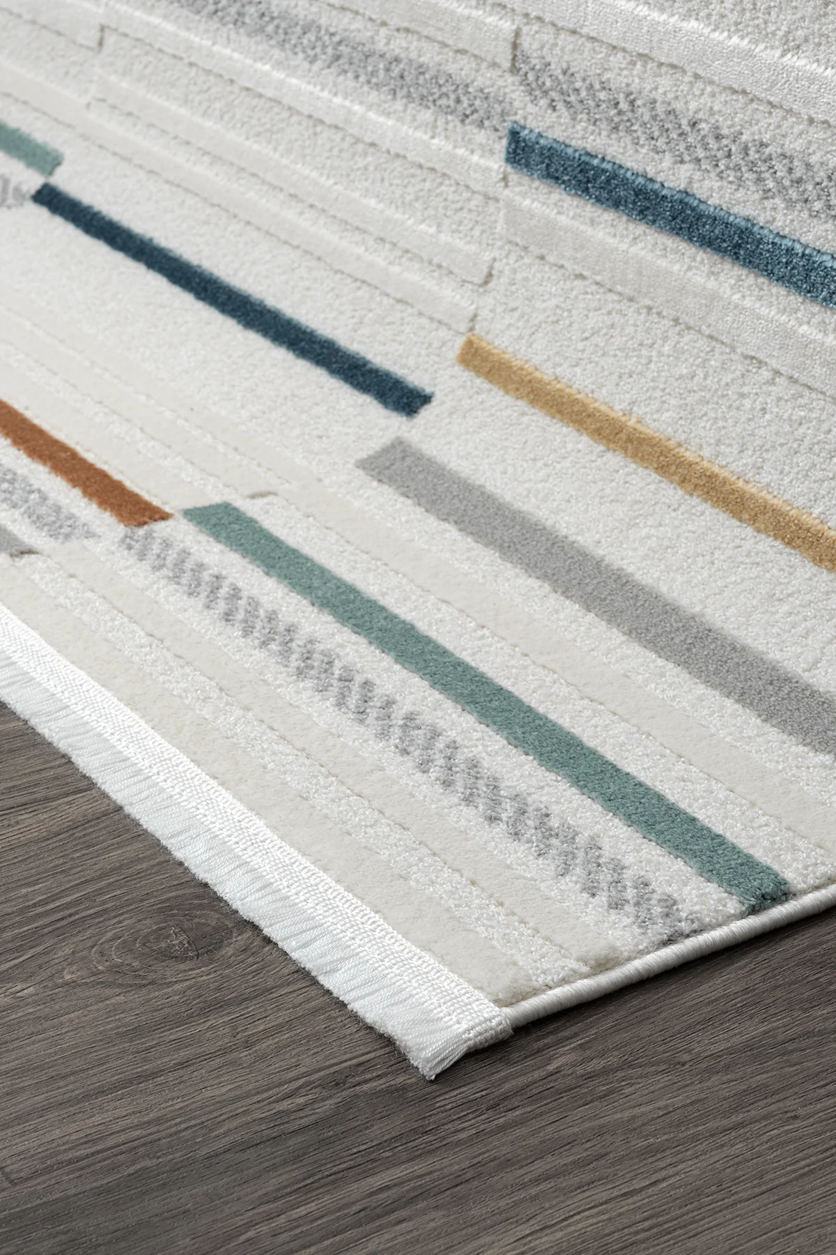 Koza Hayad Lyon Multi тепихот, кој го комбинира елегантниот минимализам на крем тоновите со шарени дезени, додава модерен и енергичен допир на вашите животни простори. Со димензии од 200×290 cm, идеален е за пространи соби. Неговата мека текстура, издржливата структура и впечатливите дезени ја прават вашата декорација и удобна и естетска.