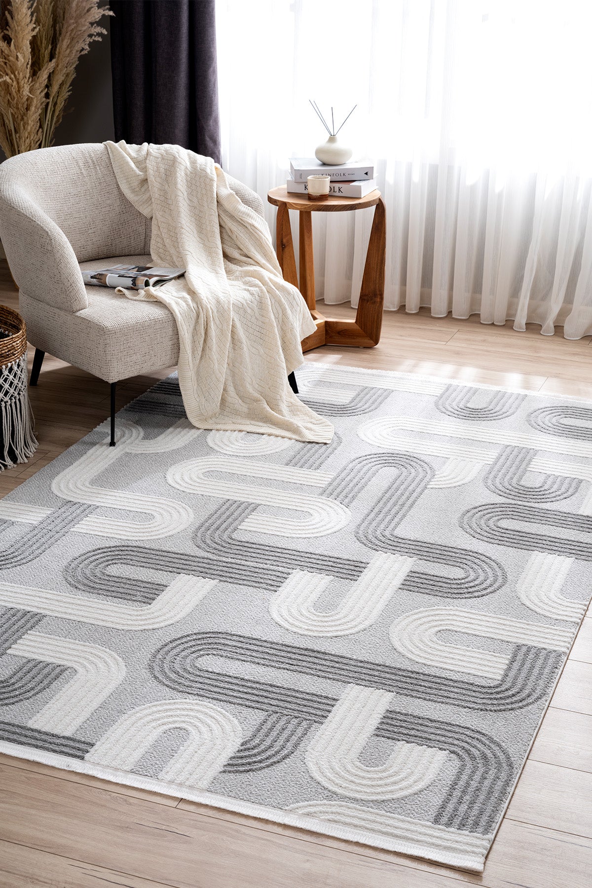 Со својите модерни линии и дизајн инспириран од скандинавскиот стил, сивиот тепих Hayad Monaco додава елеганција и удобност во животните простори. Со мека текстура и издржлива структура, нуди долготрајна употреба. Претставува стилски додаток за дневната соба, спалната соба и ходникот.