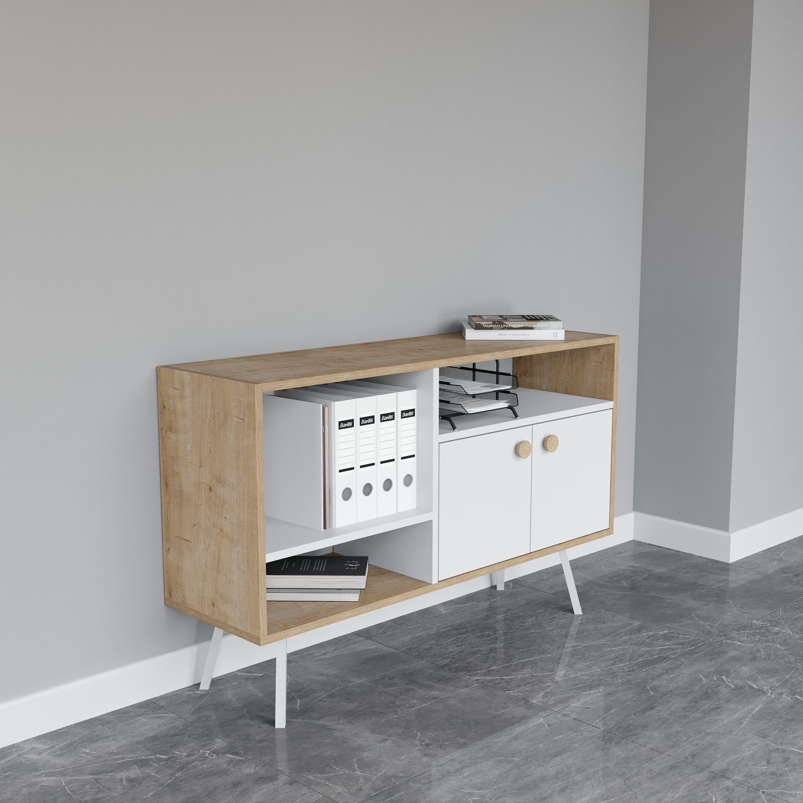 Области на употреба: Погоден за домашни канцеларии, работни соби или професионални канцеларии за да ги задоволи потребите за маса, фотелја и ормар. Помага да ги организирате вашите документи и предмети на уреден начин.
