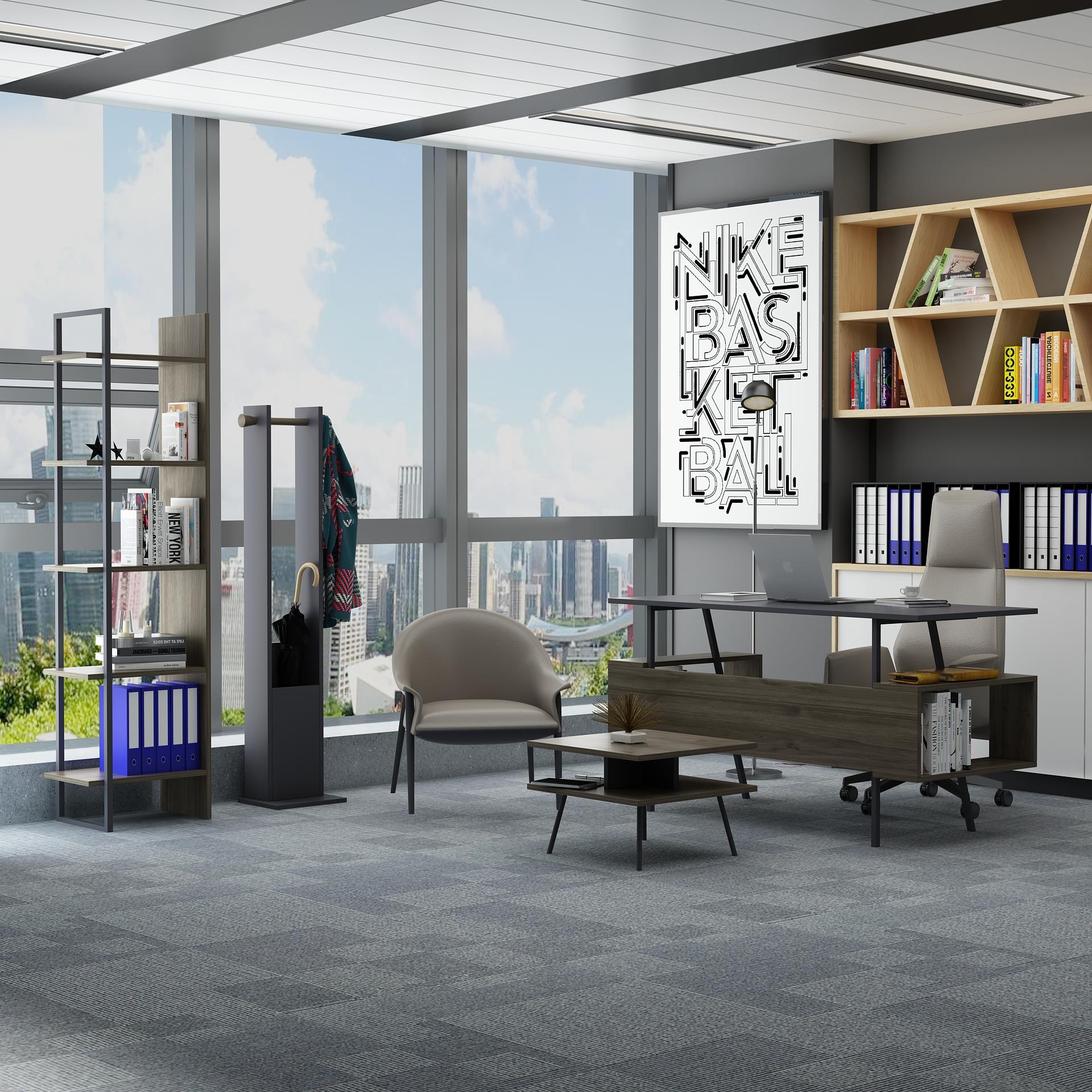 Цврстата структура, поставена на метални нозе, обезбедува долготрајна употреба; додека дополнителните полици интегрирани во нозете помагаат да го одржувате вашиот работен простор уреден. Предната завеса на ногата, која ја зајакнува врската со полиците и металната рамка, е дизајнирана имајќи ги предвид и естетскиот изглед и потребите за употреба. Благодарение на минималистичкиот дизајн, можете да постигнете елегантна декорација во канцелариските средини без да се откажете од ефикасноста.