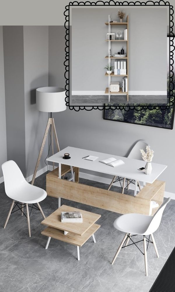 Irony Poly Office Team маса + шкаф + масичка / бела и даб