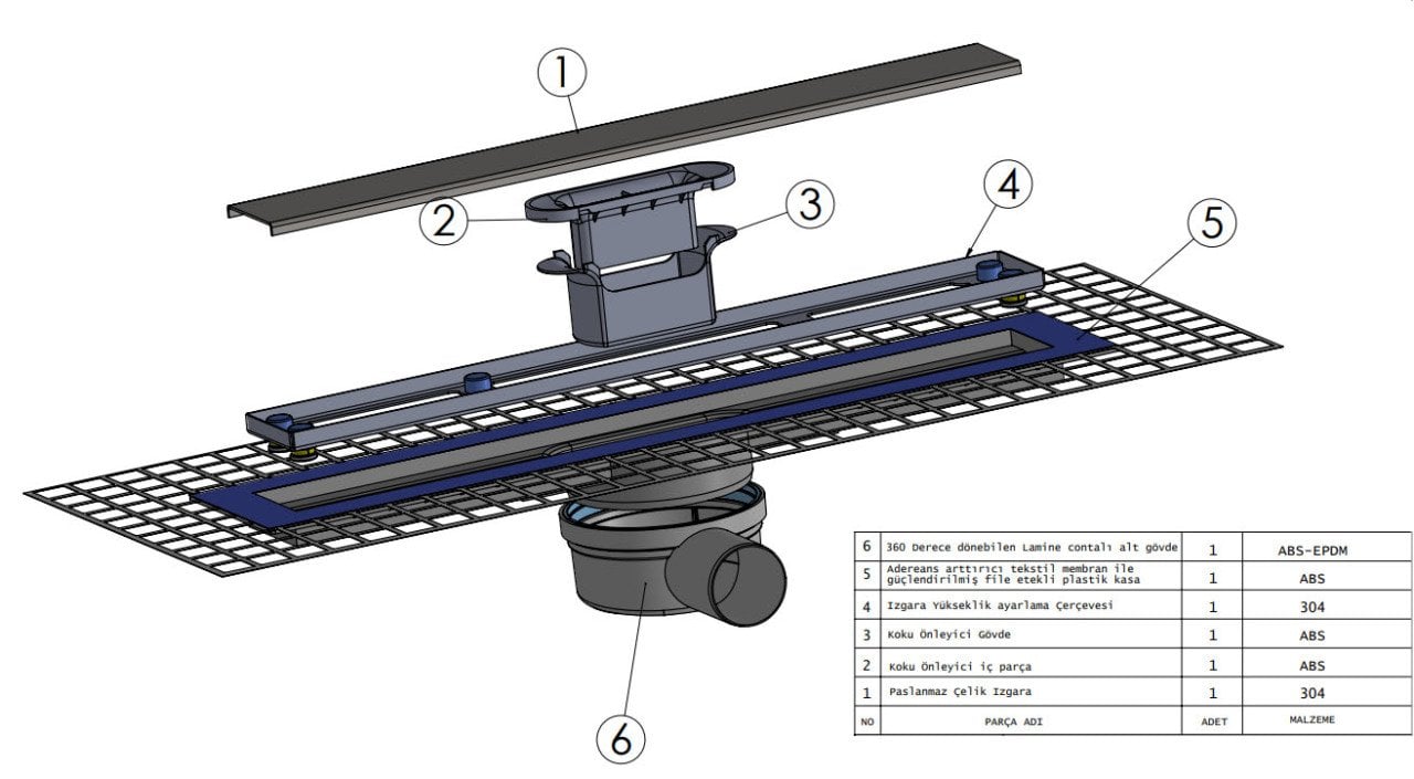 Линија на лабиринт Линија 2 за изолација на душ канали е специјално дизајнирана за ефикасно одводување на вода во вашите душ кабини. Со својата 304 квалитетна инокс решетка и ABS долен корпус со дијаметар од 50 мм, нуди издржлива структура. Со својата систем за спречување на миризми во водата, обезбедува хигиена, а исто така, пластичниот капак засилуван со текстилна мембрана со зголемена адхезија и армиран со мрежеста пластика обезбедува можност за долготрајна и безбедна употреба. Со својата вртлива ламинатна гума со 360° контакт, спречува проток на вода. Заедно со нивоарите за балансирање, обезбедува лесна монтажа и инсталација.