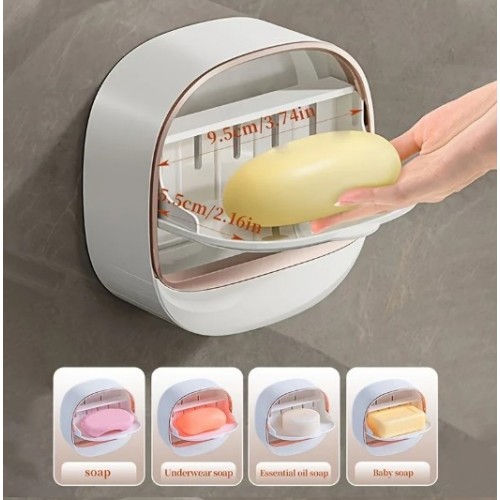 Капакла солидна сапунка со дренажна комора е дизајнирана да обезбеди хигиенска и уредна употреба на сапуните. Со двослоен дизајн, горниот слој брзо ја впива водата, додека долниот дел ја собира.