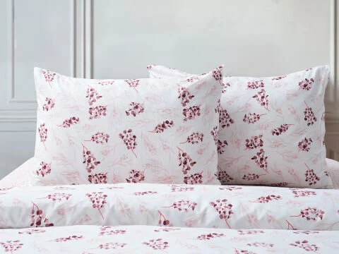 Двоен сет постелнина во бела боја со цветен дезен. Со својата памучна структура е мек и удобен.