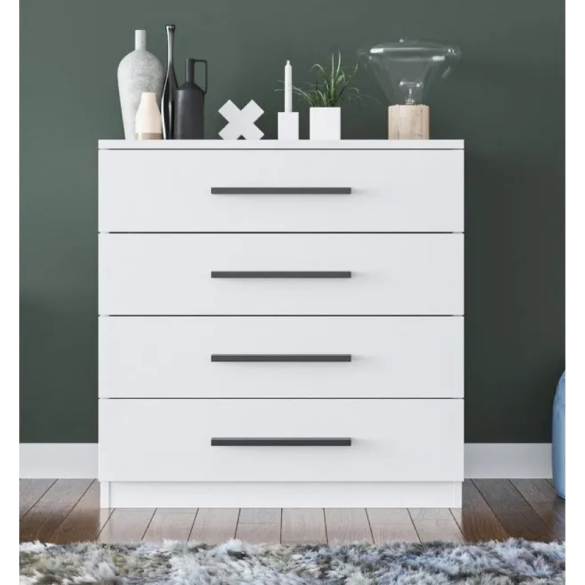 Комодата, со својата едноставна бела боја и функционален дизајн, ќе донесе свеж изглед во вашите животни простори. Благодарение на структурата со 4 фиоки, ви помага да ги чувате вашите предмети на организиран начин. Нуди долготрајна употреба со својата издржлива материјална структура.