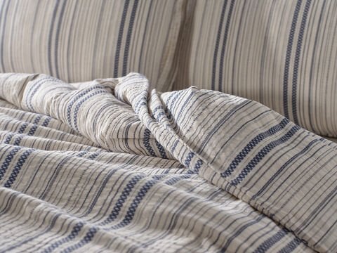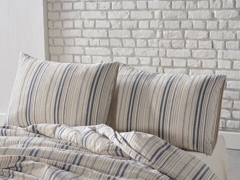 Комплет за постелнина за еден кревет со 80% памук и 20% полиестер, со природен изглед и минимален дизајн. Обоена предива и лесно за пеглање.