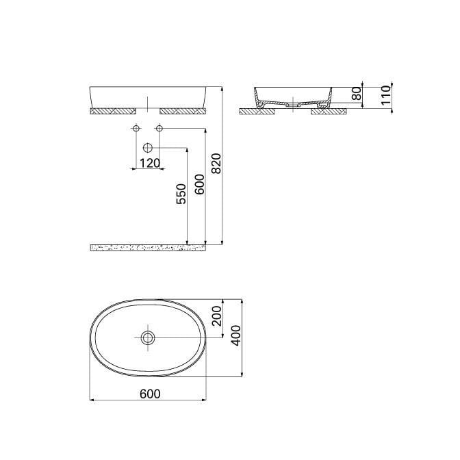 Конзолен овален умивалник за тераса 60 см бел LP160-00CB00E-0000