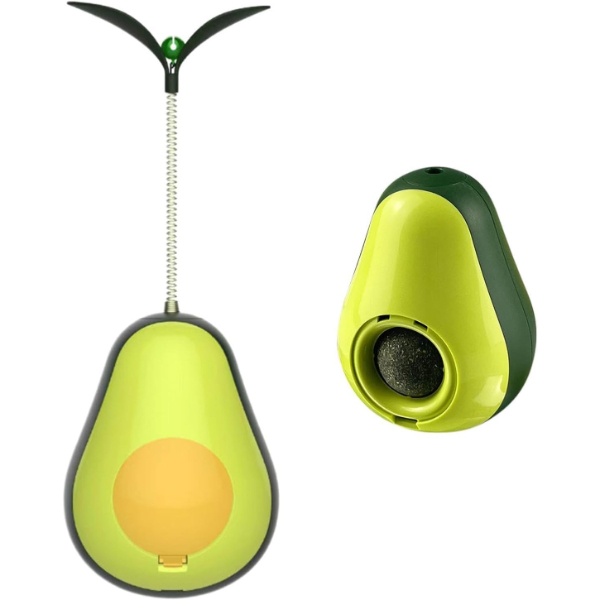 Котешка играчка во облик на авокадо со нане и резервоар за храна
