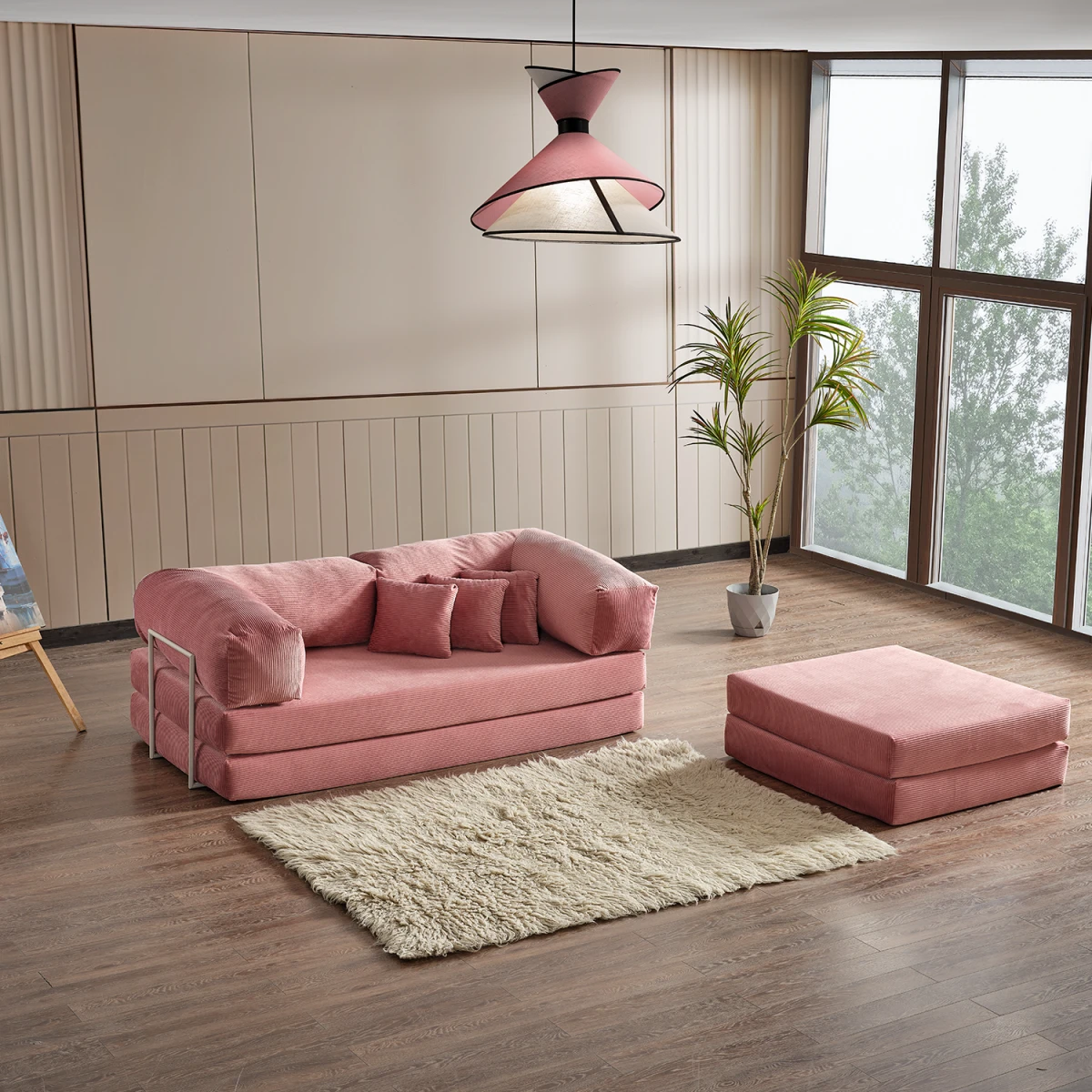 Legom Alis Мултифункционалниот Кауч, со својата функционална структура која може да се претвори во кревет и модерен дизајн, нуди комфор и естетика во вашите животни простори. Благодарение на бојата пудра, дава елегантна, топла и свежа атмосфера на просторот. Обезбедува удобно седење за секојдневна употреба, а при потреба може да се користи и како практичен кревет.