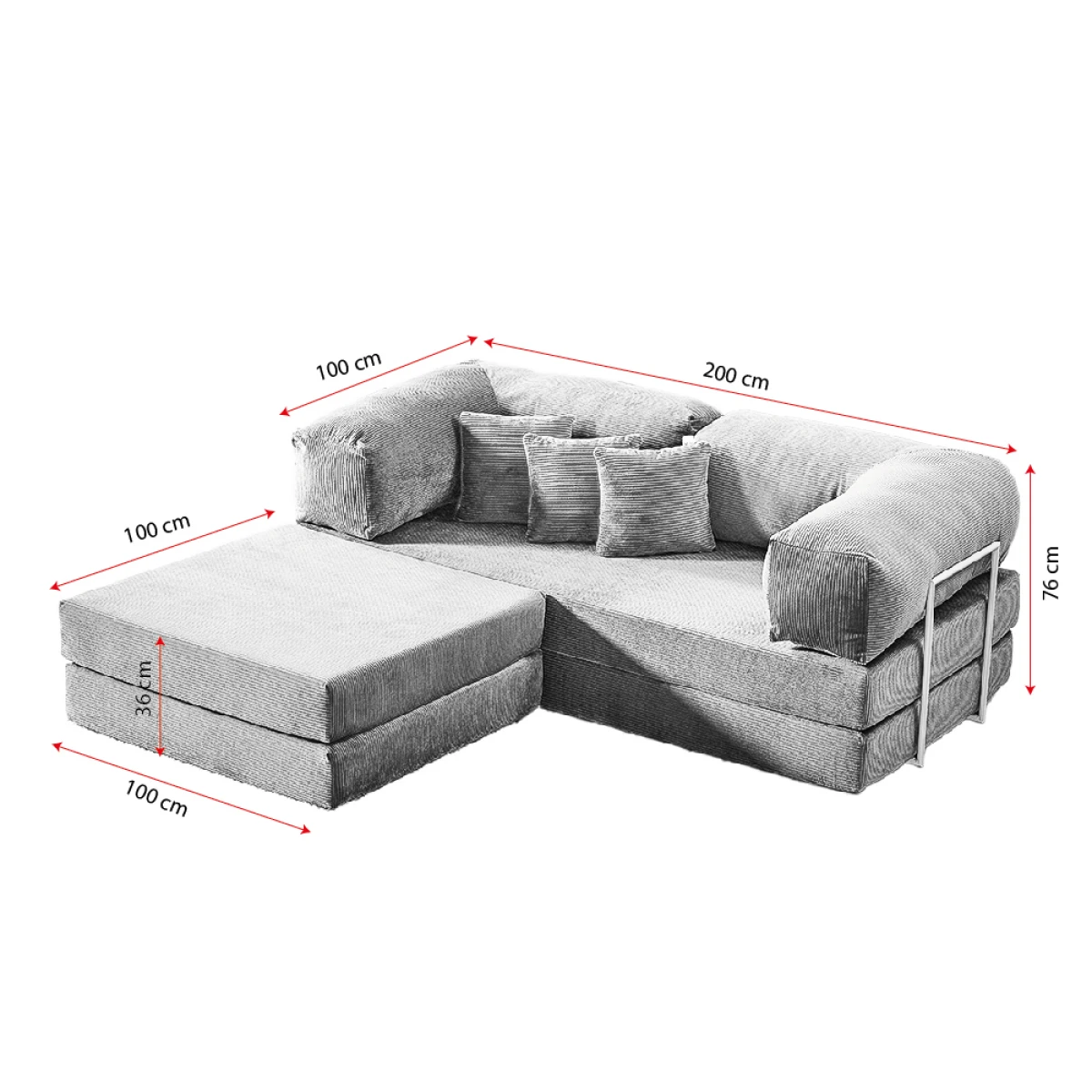Забелешка: Аксесоарите и другите производи прикажани на сликите не се вклучени во цената. Производот што се продава е само каучот и 3 перници како подарок.