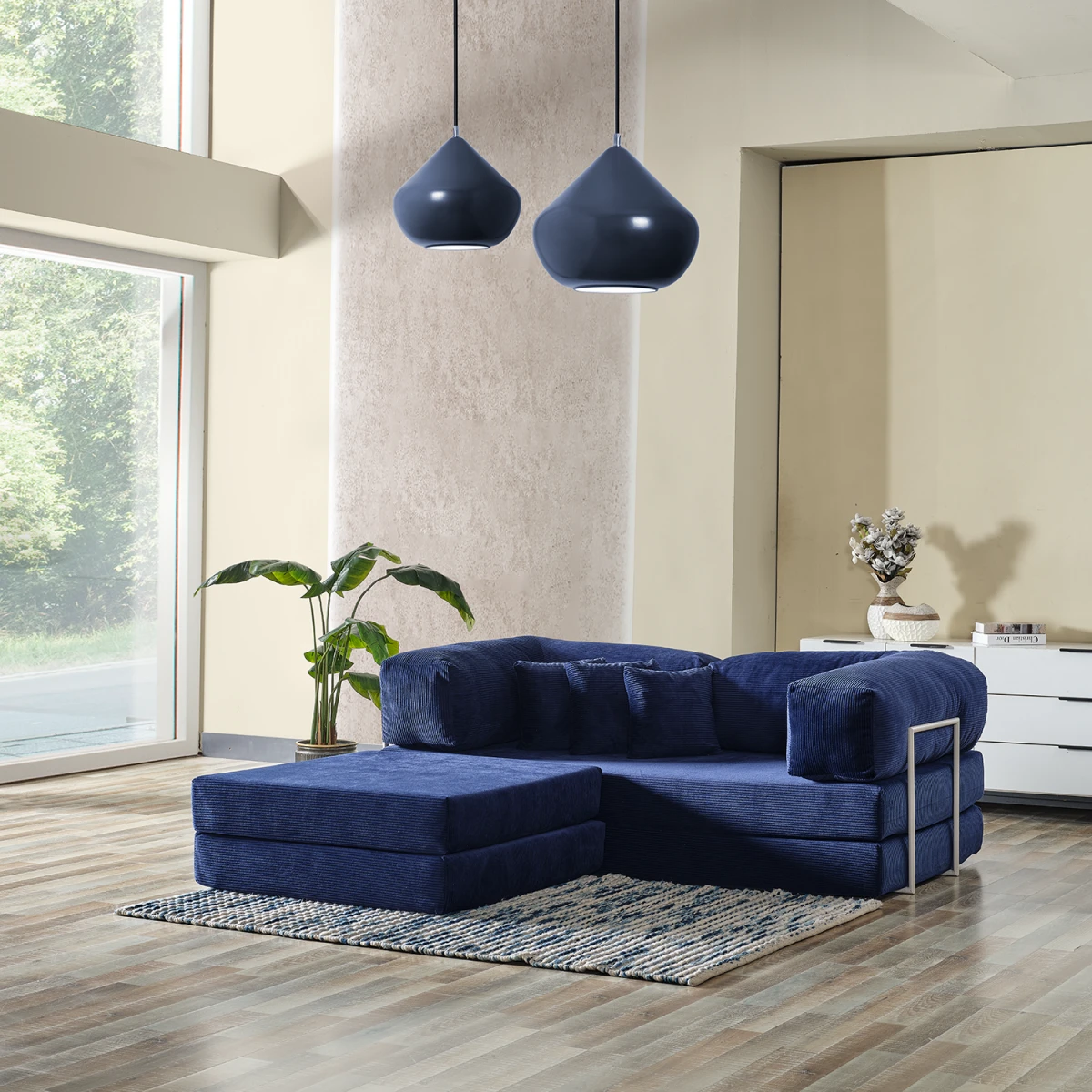 Legom Alis Мултифункционалниот кауч, со својата функционална структура што може да се претвори во кревет и модерен дизајн, носи удобност и свежина во вашите простори за живеење. Благодарение на сината боја, создава мирна, спокојна и елегантна атмосфера. Нуди удобно седење за секојдневна употреба, а може да се користи и како практичен кревет кога е потребно.