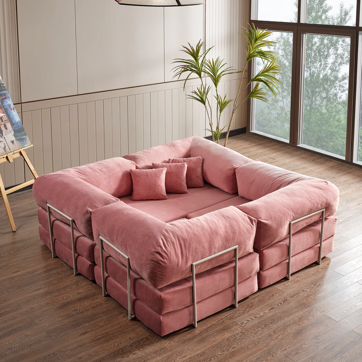 Со својот широк простор за седење, е идеален за семејно поминување време, играње, разговор или одмор. Ви овозможува да поминете забавни и удобни моменти со вашите деца. Овој кауч не е само мебел; исто така е и повеќенаменски животен простор што додава стил, топлина и мир во вашиот дом.