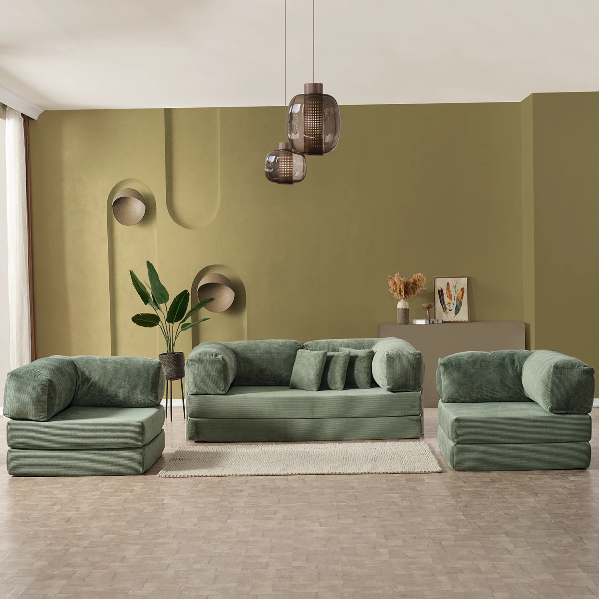 Legom Avanos Мултифункционалниот Сет за Седење, со својата функционална структура која може да се претвори во кревет и зелената боја, му дава свеж и модерен изглед на вашите животни простори.