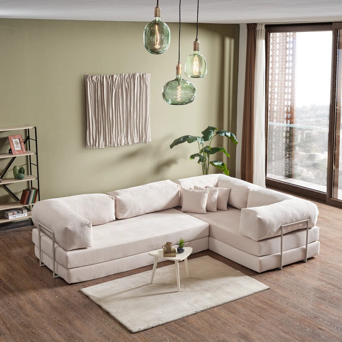 Legom Lucas Мултифункционалниот L Кауч, со својата функционална структура која може да се претвори во кревет и едноставниот дизајн, додава свежина и удобност на вашите простори за живеење. Благодарение на крем бојата, нуди светол, модерен и безвременски декор. Обезбедува удобно седење за секојдневна употреба, а при потреба лесно се претвора во кревет, нудејќи идеално решение за вашите гости.