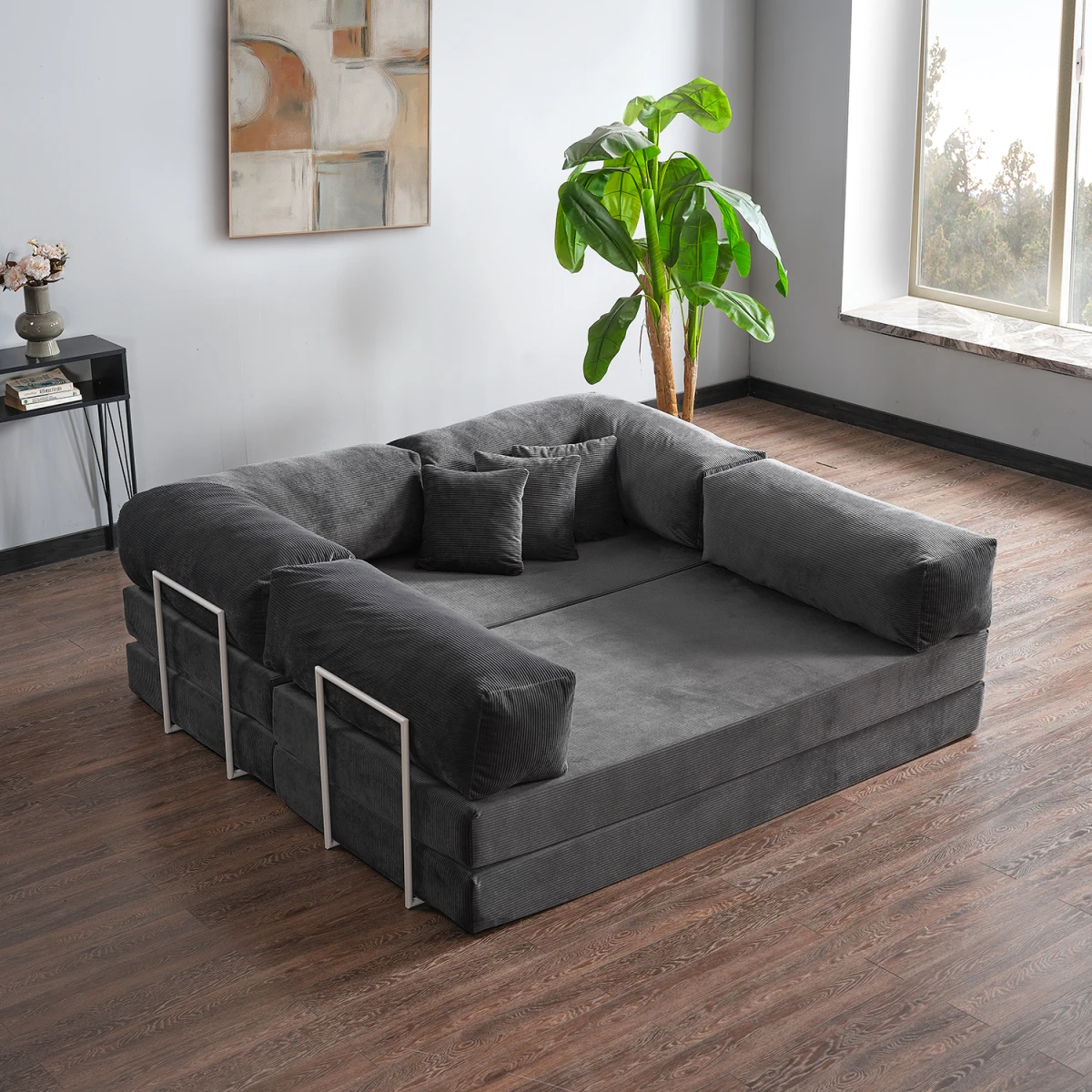 Legom Petek Мултифункционален L Кауч, со модерниот и моќен изглед на антрацитната боја, му дава елеганција на вашиот животен простор.