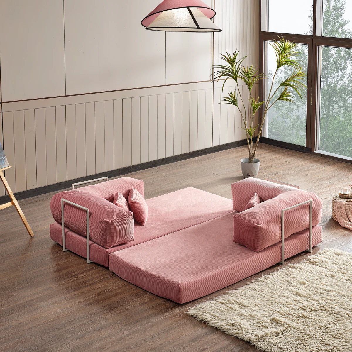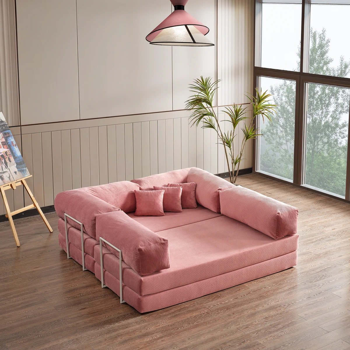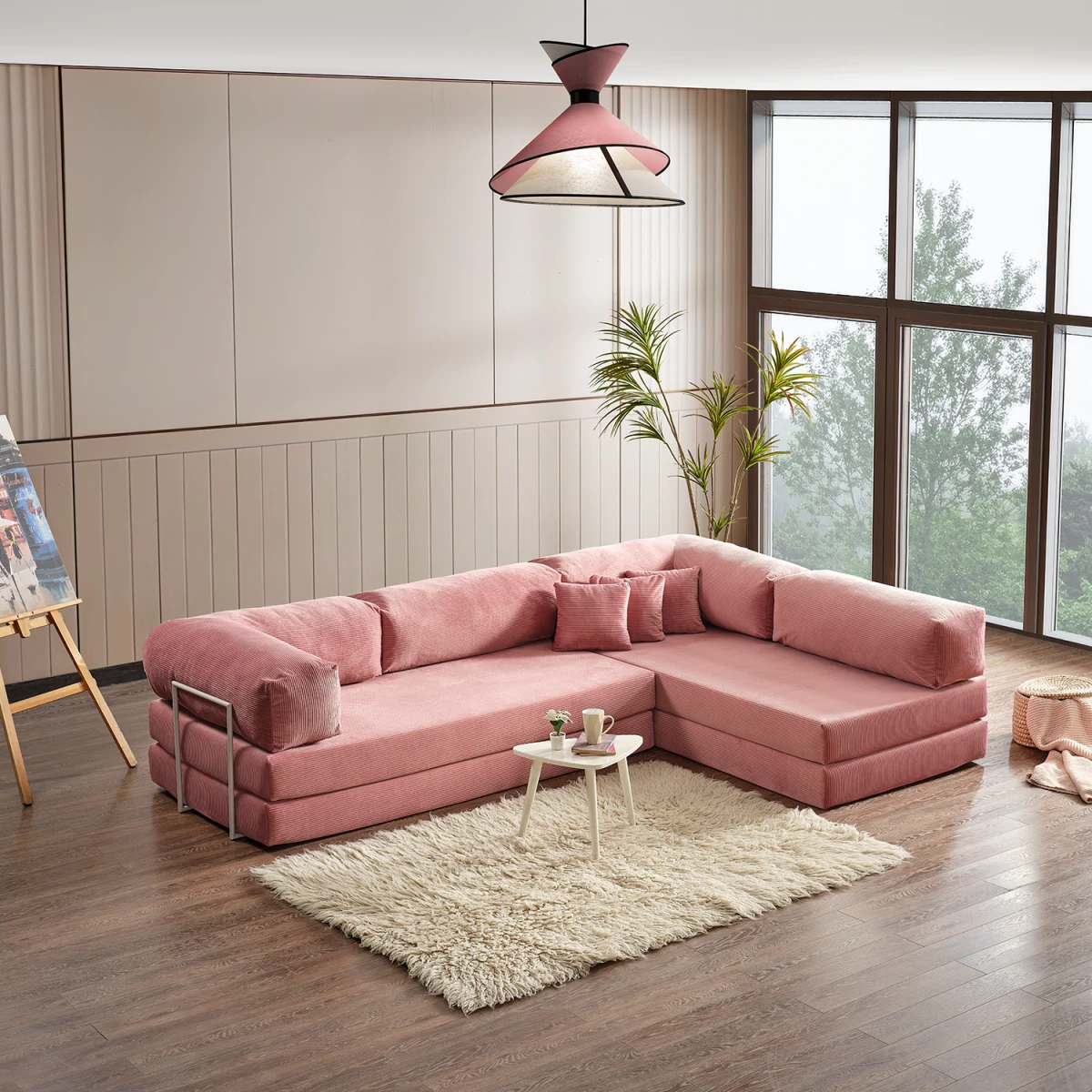 Legom Petek Višenamenska L Sofa, со својата функционална структура која може да се претвори во кревет и модерен дизајн, нуди удобност и естетика во вашите живеалишта. Благодарение на бојата на пудра, му дава на просторот елегантен, топол и свеж изглед. Обезбедува удобно седење за секојдневна употреба, а при потреба може да се користи и како практичен кревет.