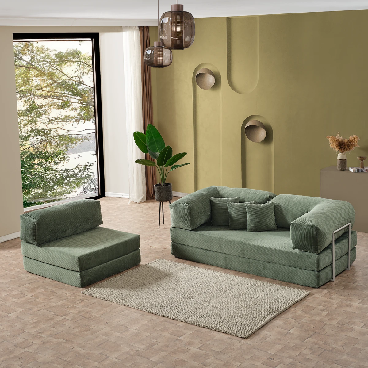 Legom Sera Мултифункционален Комплет од Фотелји, со својот модерен дизајн и функционална структура, на вашите животни простори им носи удобност и естетика. Благодарение на можноста да се претвори во кревет, покрај секојдневната употреба, нуди практично и удобно решение за примање гости. Со пространиот простор за седење, овозможува пријатно и мирно време со семејството.