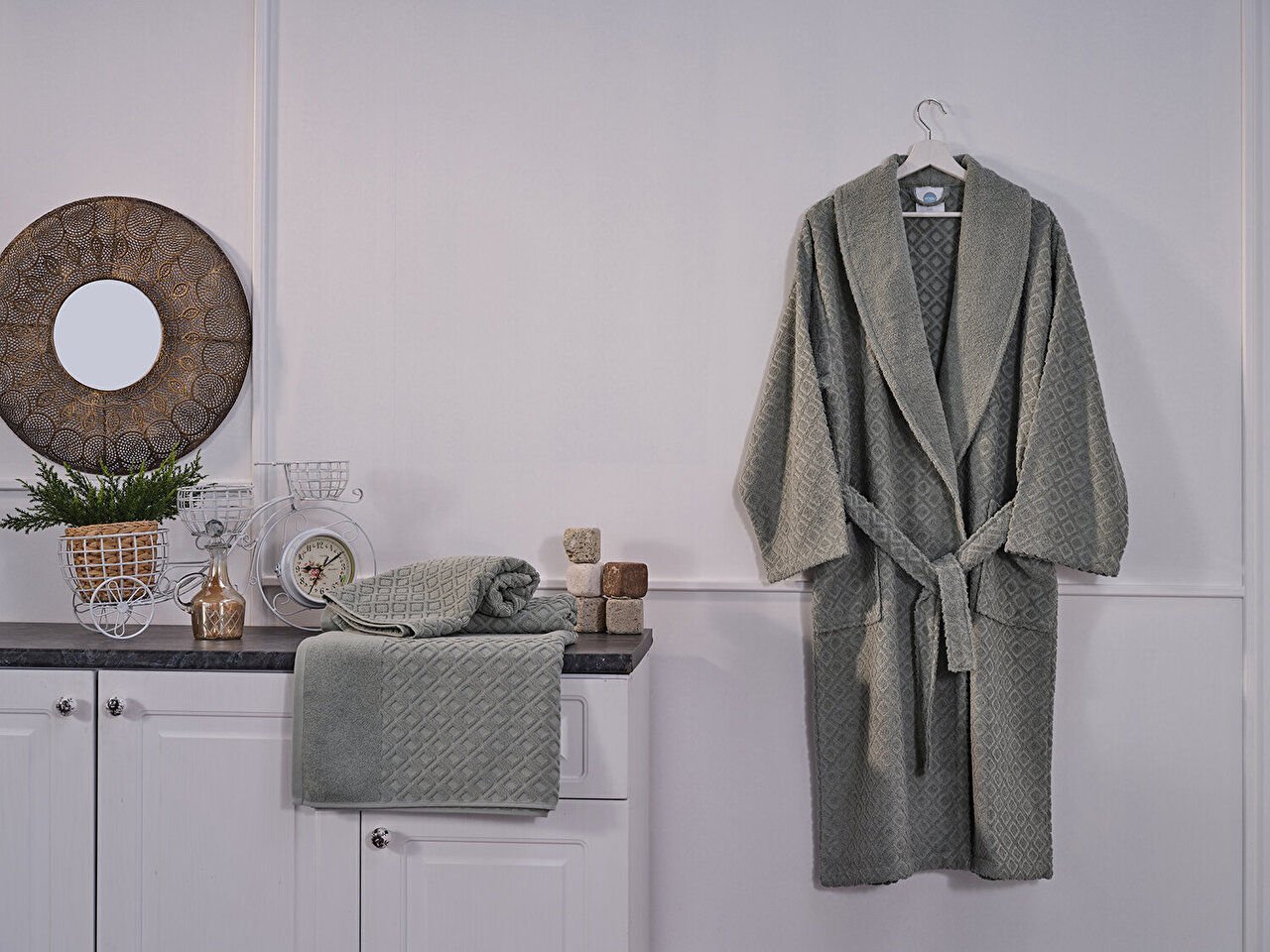 Зелената луксузна бањарка изработена од 100% памучна ткаенина ја зголемува удобноста по бањање со својата свиленкаста мекост и супер апсорбирачка структура. Со елегантниот дизајн нуди и стилско и удобно користење.