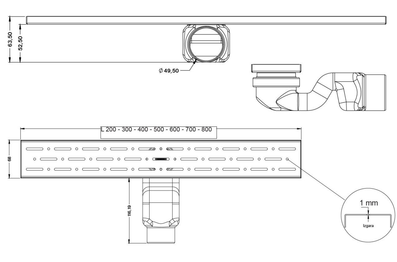 е естетско, хигиенско и долготрајно решение за дренажа. Со Ø50 страничен излез и систем со ламинатно