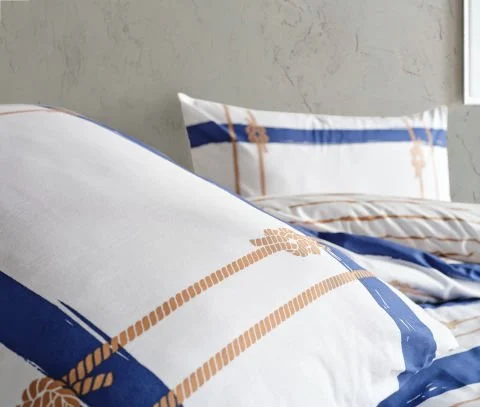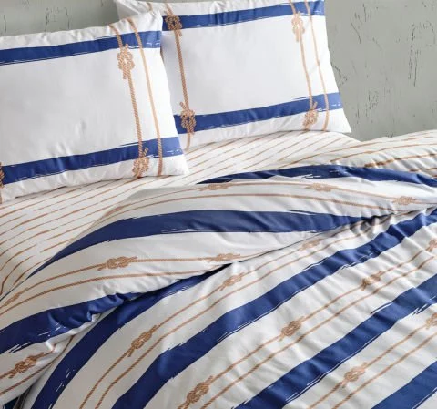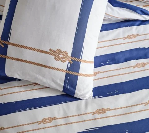 100% памук, ткаенина што дише, со хоризонтални линии и елегантен единечен постелен сет. Лесен за чистење.