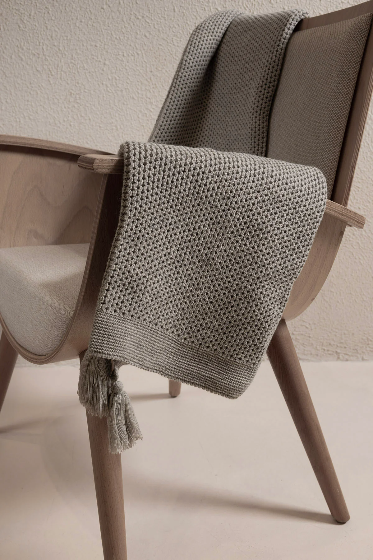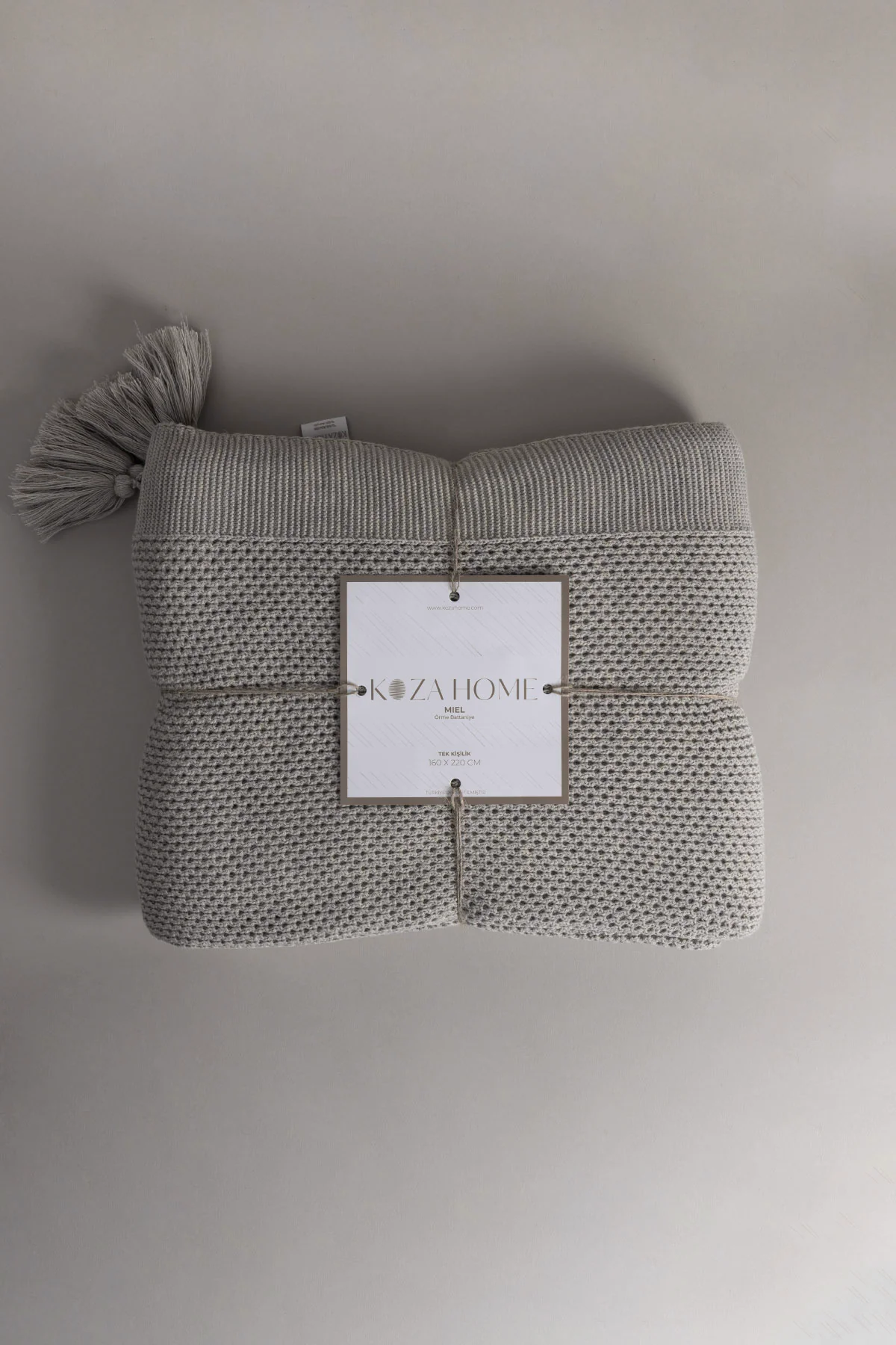 Koza Home мед ќебето обезбедува топлина со својата мека текстура во студените зимски денови. Благодарение на неговата двострана употреба и висока способност за задржување на топлината, нуди и функционална и декоративна употреба. Деталот со помпони на рабовите додава динамика и елеганција во просторот.