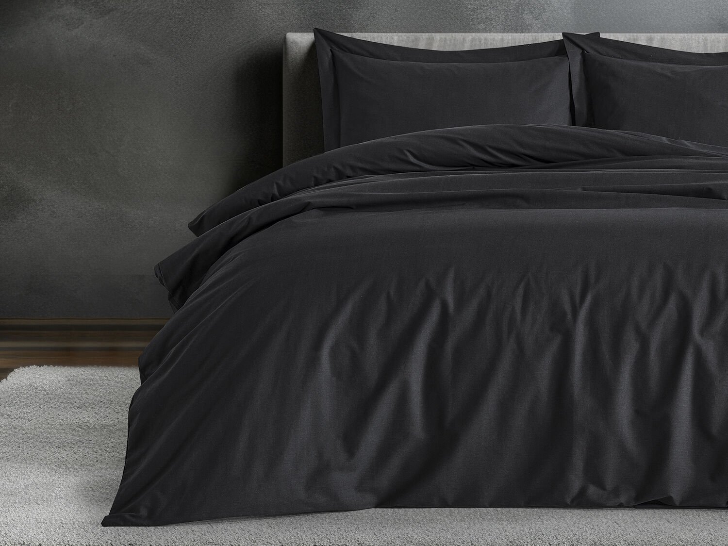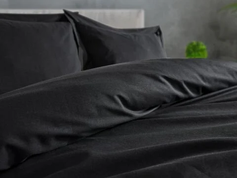 Црниот постелни комплет Monoco, со својот едноставен и модерен дизајн, му дава елегантен изглед на спалната соба. Со меката текстура нуди удобен сон.