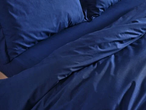 Monoco постелнината со својата темно сина боја додава модерен и елегантен изглед на спалната соба. Благодарение на меката текстура, нуди удобно искуство на спиење.