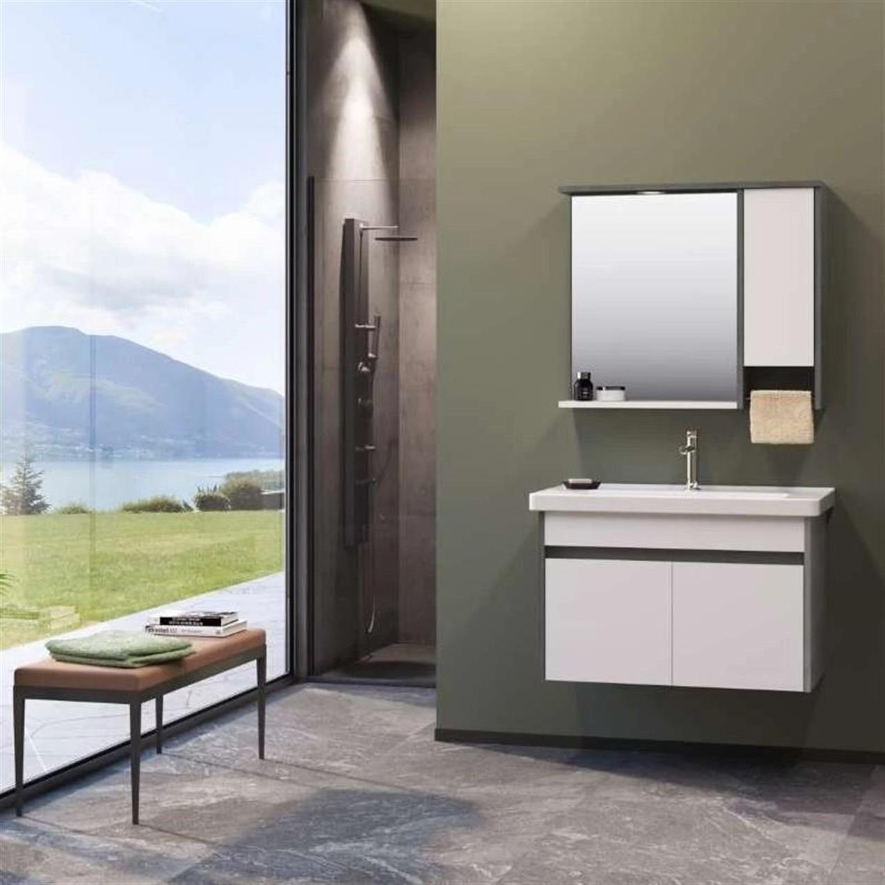Со керамичкиот мијалник и горниот модул со огледало и LED светла, добивате сет кој е и естетски и функционален.