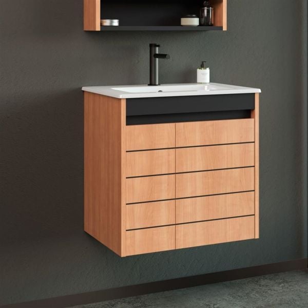Орка Рикато 60 цм Моргана Кираз Лак Бања Гарнитура, со својот природен изглед на дрво и модерните детали додава елеганција на бањата.