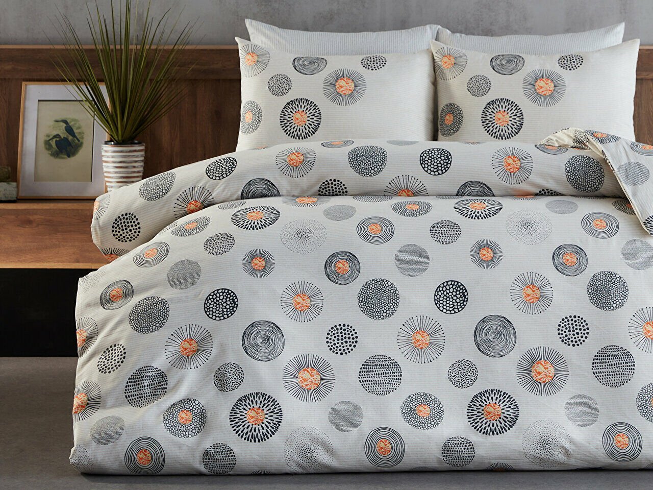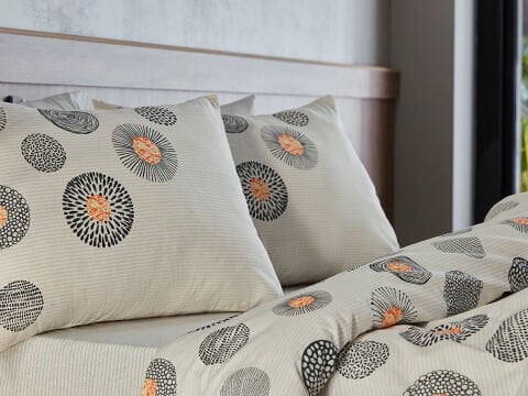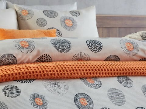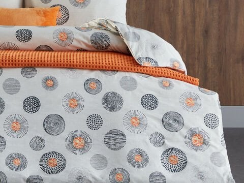 Комплет постелнина за двоен кревет со едноставен и елегантен сив дизајн, составен од 65% памук и 35% полиестер. Лесно се пегла и долго го задржува својот изглед.