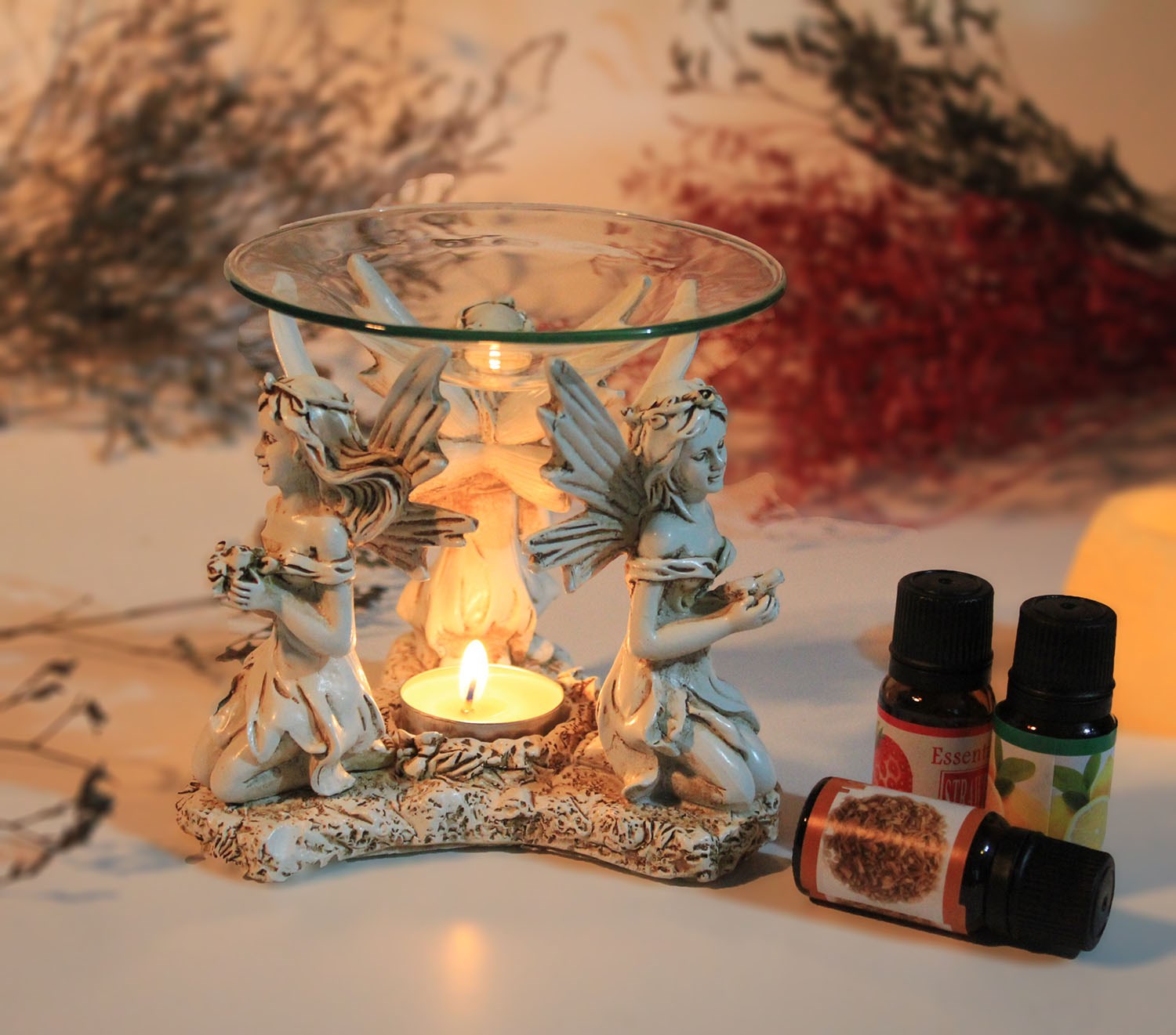 Полиестерен Мелечен Бухурданлик Модел 2 има естетски дизајн и е украсен со фигури на ангели кои се молат. Нежните бои создаваат духовна атмосфера и го прават овој производ одличен декоративен елемент за домот. Овој бухурданлик, со стаклената подлога, лесно се користи и шири пријатен мирис во просторијата.