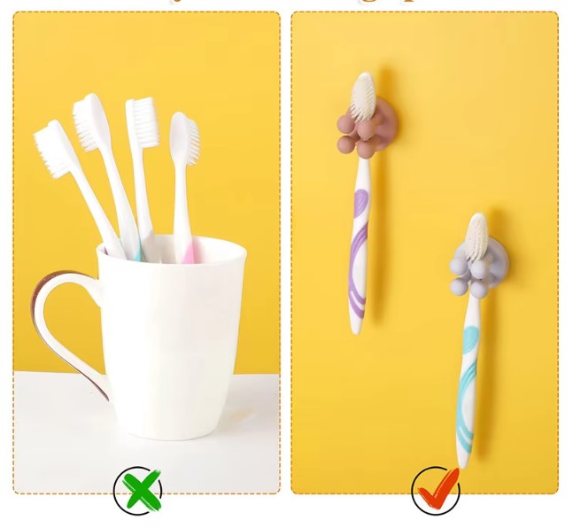 Практичен држач за ѕид со лепило е изработен од флексибилен и издржлив силиконски материјал. Овој клип може да се држи на површини без потреба од дупчење или завртување, благодарение на својата леплива основа.