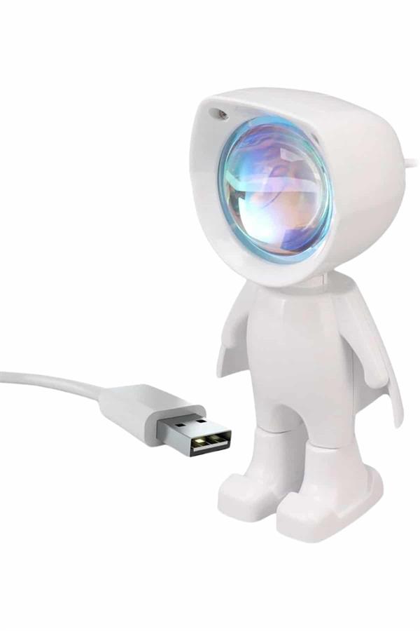 Оваа симпатична лампа за проектор со тема на астронат нуди декоративно и функционално решение за осветлување. Со својот модерен и забавен дизајн, таа додава естетска атмосфера во секојдневната употреба, додека активната употреба создава опуштена атмосфера со меки и топли тонови на светлината со ефект на зајдисонце.
