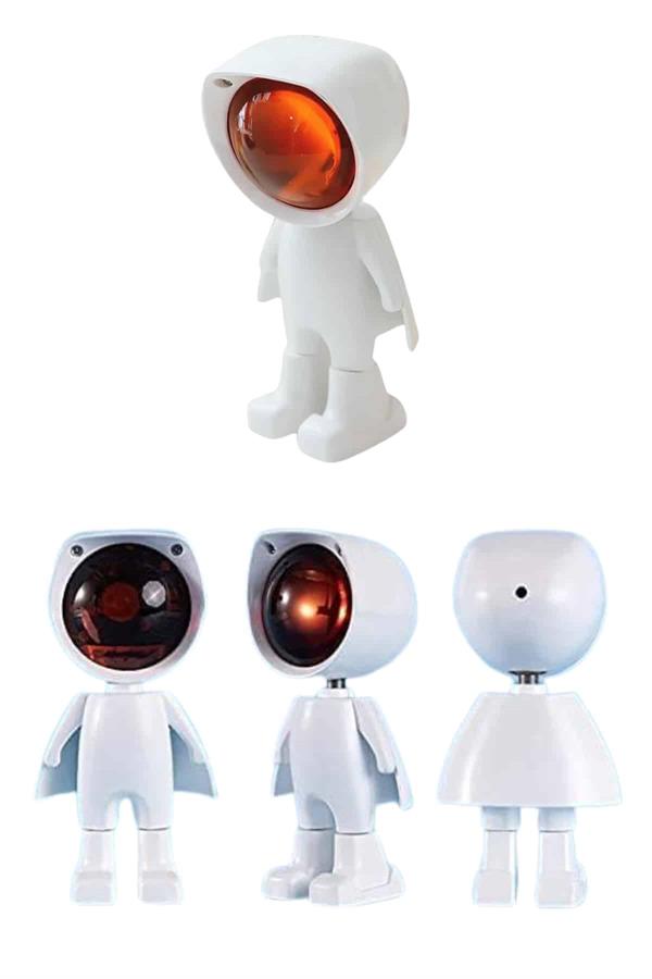 Оваа полначка лампа за залез, со симпатичен дизајн на астронат и топли тонови на боја, додава естетски допир и создава мирна атмосфера во просторот. Со ефект на залез, светлото е идеално за корисниците кои сакаат да создадат пригушена и опуштена средина, особено во вечерните часови.