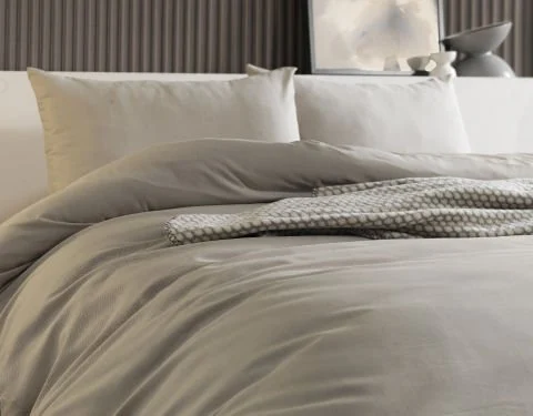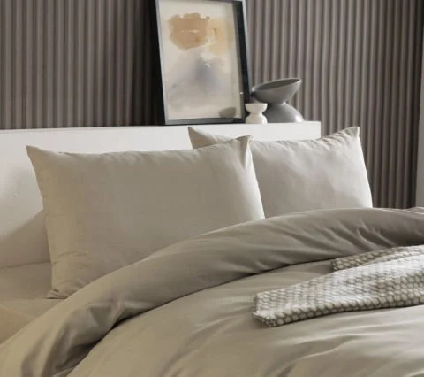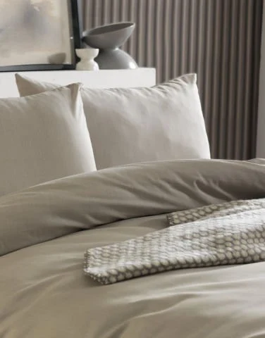 %65 памук, %35 полиестер мешавина, едноставен и елегантен дизајн на постелни комплет за еден легло. Лесно се пегла и долго време ја задржува својата живост.