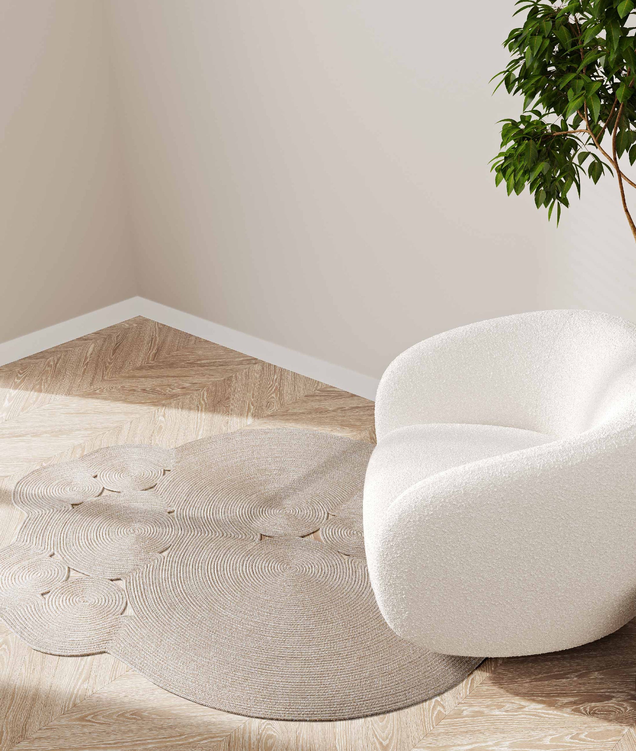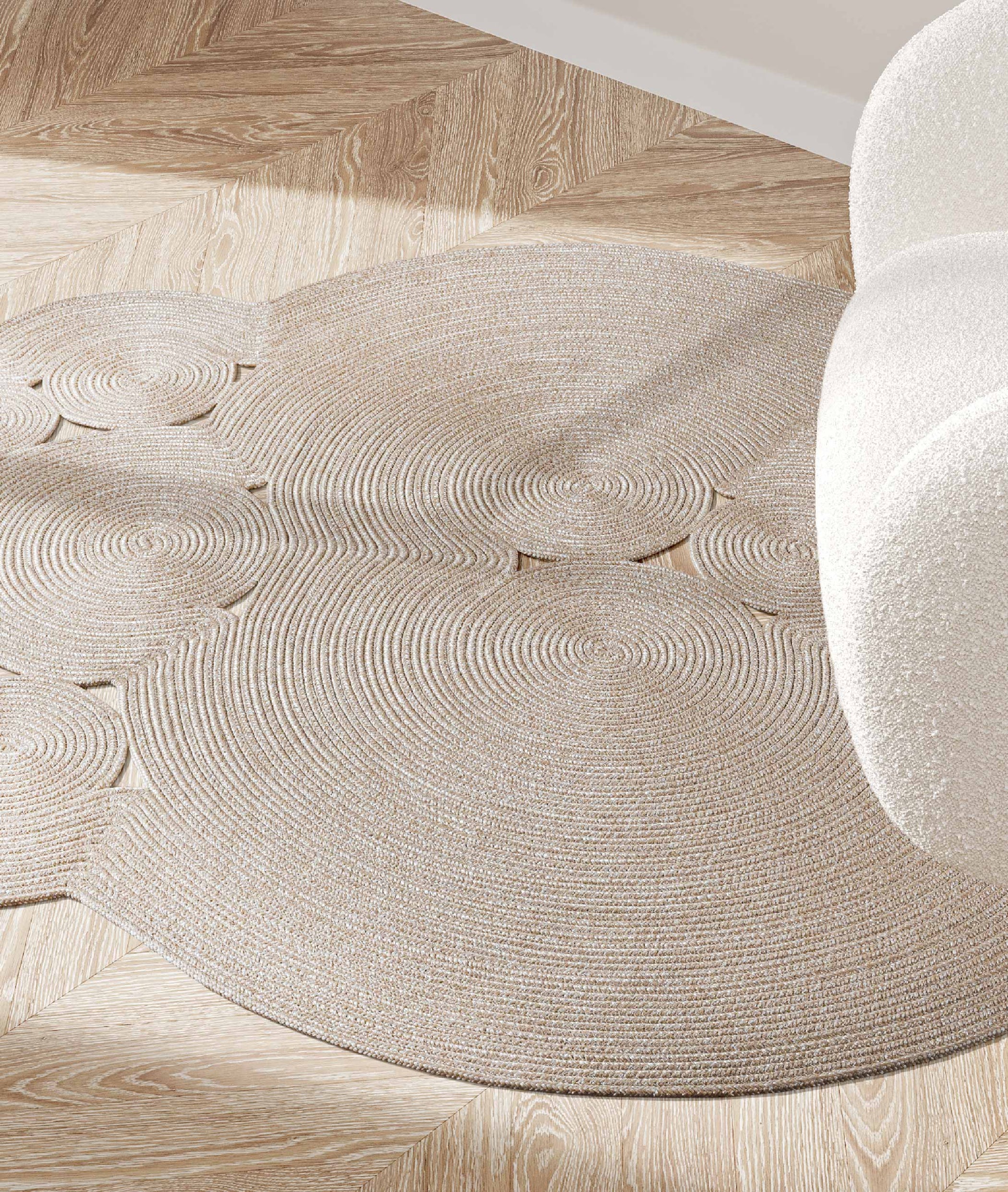 Рачно плетениот беж мијач, дизајниран да излезе надвор од класичните форми на теписи, со својата природна памучна текстура и издржлива структура, додава топлина на балконите и терасите. Направен од конец отпорен на вода и сонце, овој тепих нуди практична употреба со својата долготрајност и можност за перење.