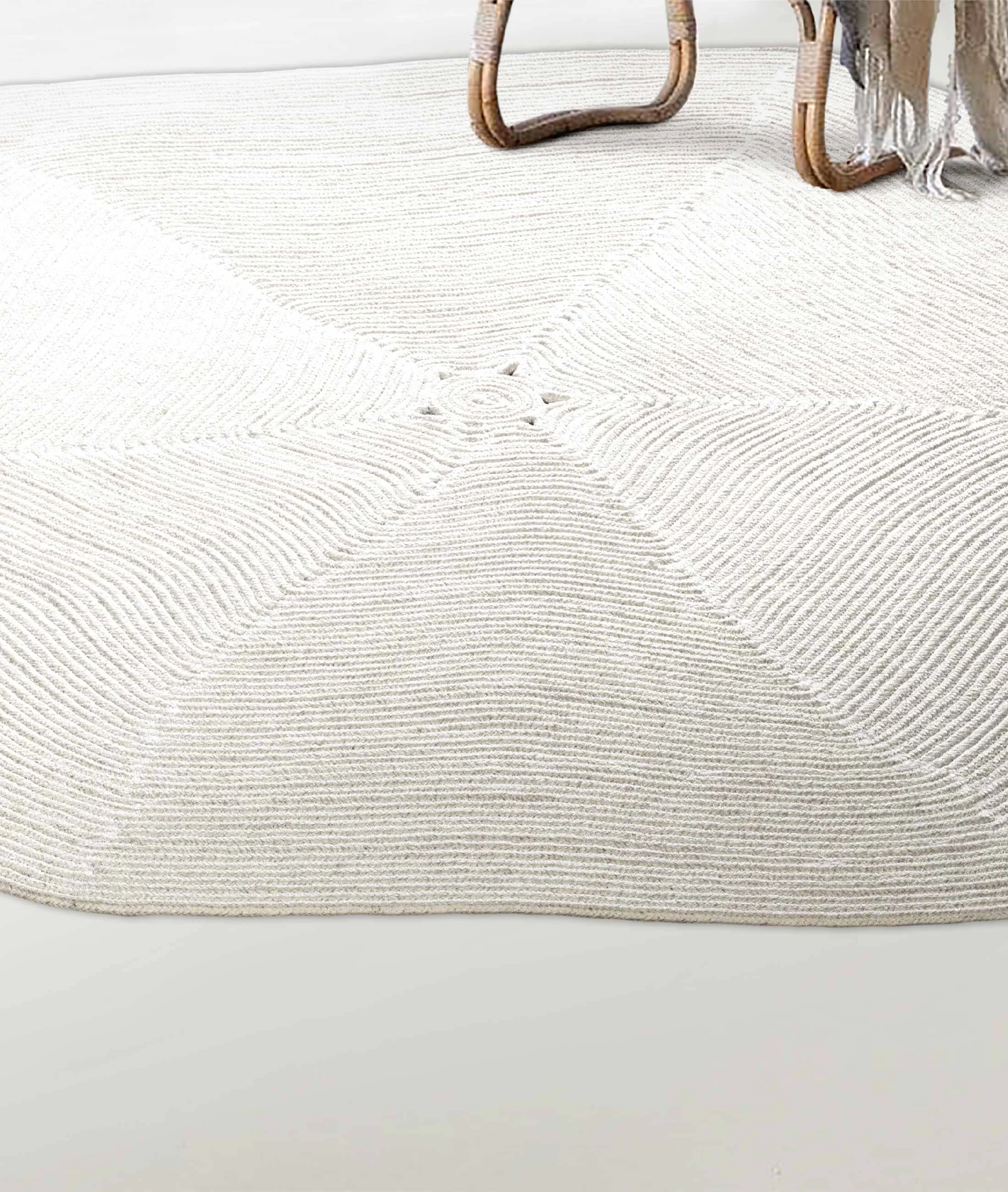 Рачно Плетен Шестаголен Бел Памучен Мијлив Балконски и Терасен Сламен Тепих 200×200
