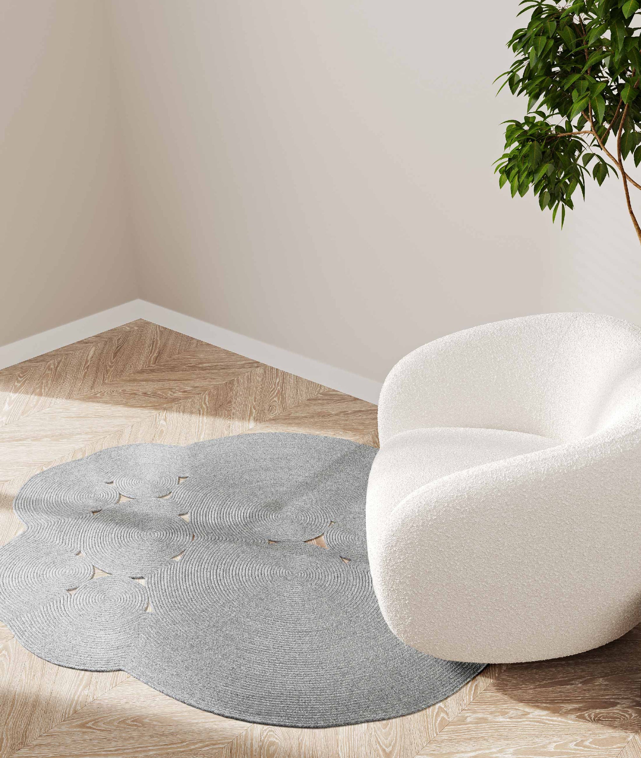 Рачно Плетен Сив Памучен Мијлив Балконски и Терасен Сламен Тепих