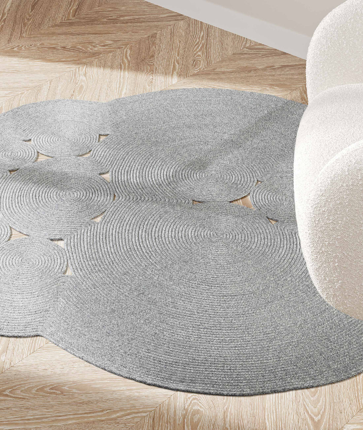 Рачно плетениот сив сламен тепих, кој се истакнува со својата природна текстура и модерен изглед, е изработен од памучен конец. Со својата отпорност на вода и сонце, обезбедува долготрајна употреба на балкони, тераси и градини. Благодарение на можноста за миење, претставува практичен и елегантен избор.