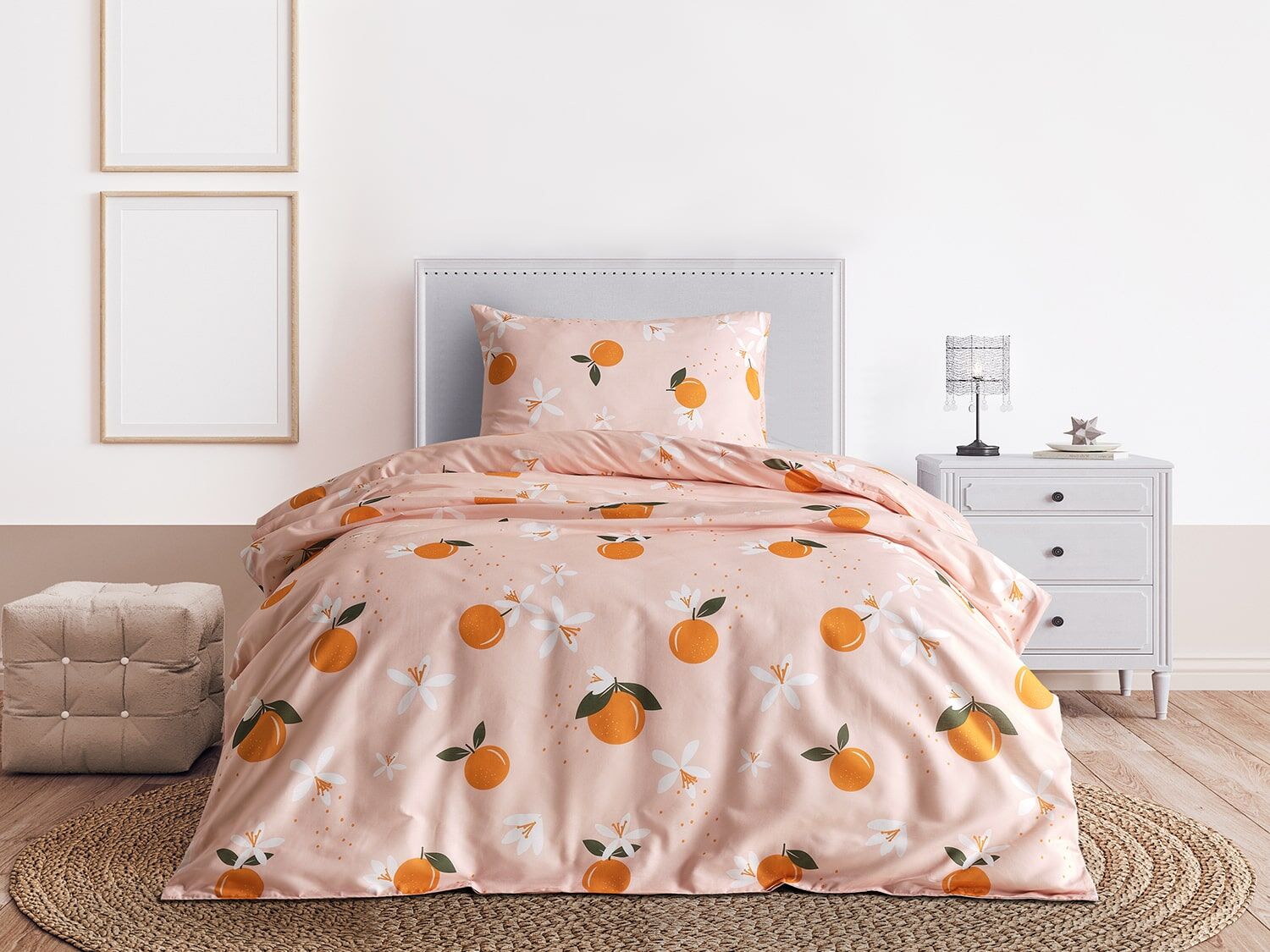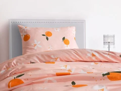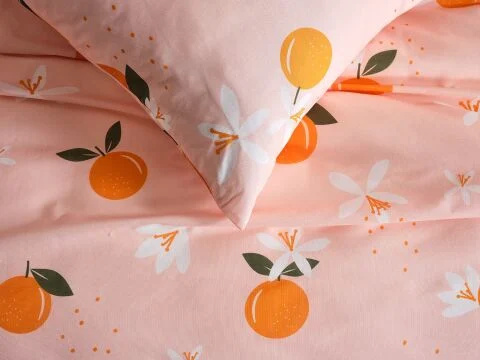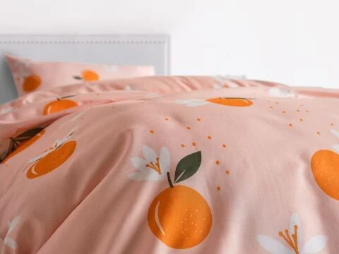 Дизајниран со енергични портокалови тонови, постелниот комплет Ranforce Joyful Orange внесува живост и топлина во спалната соба. Благодарение на 100% памучната ранфорс ткаенина, има дишечка структура, пријатна за кожата и нуди мек допир. Овој постелен комплет, произведен од природни памучни влакна, е идеален за удобно и мирно спиење.
