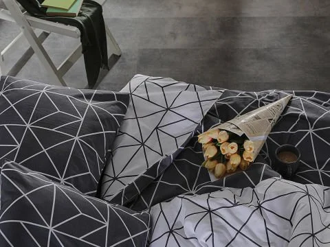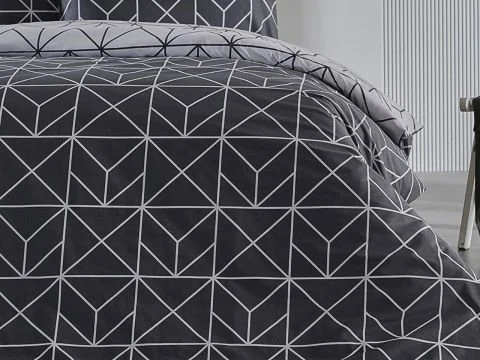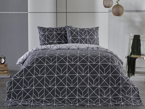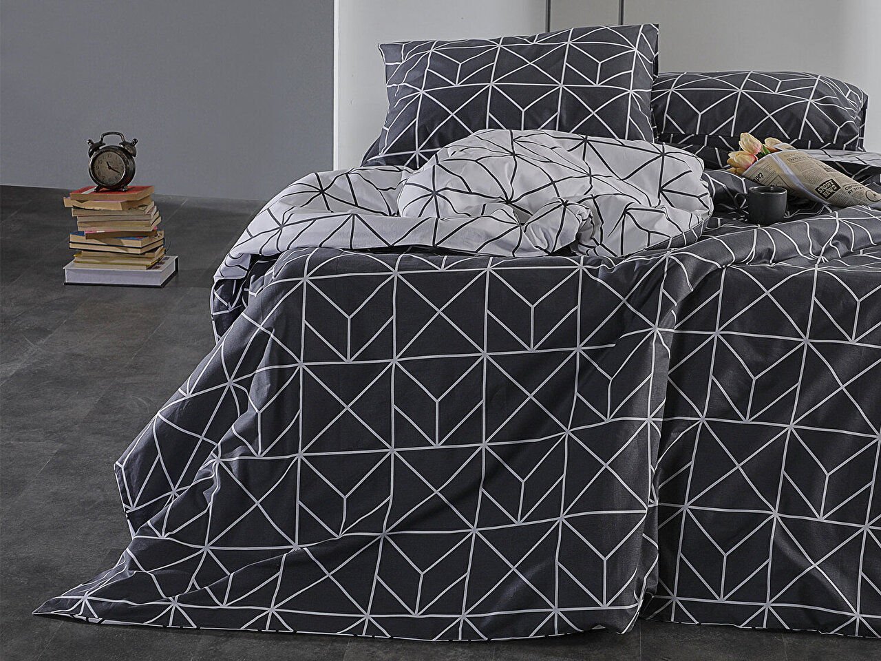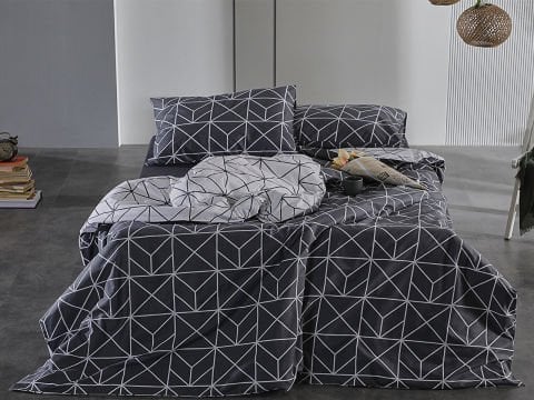 Произведен од 100% памучна ранфорс ткаенина, постелни комплет во антрацит боја кој е стилски и практичен за двоен king size кревет.