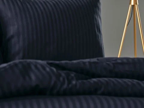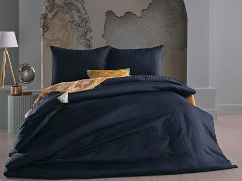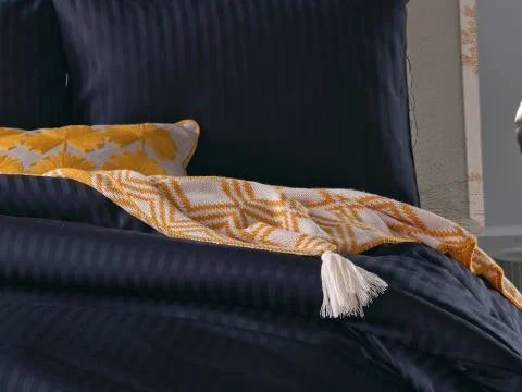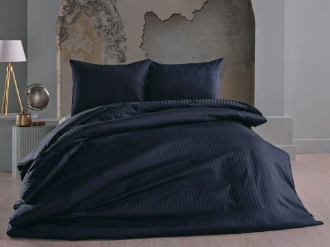 Овој комплет постелнина двојно king size, изработен од 100% памучен сатен со 84 нишки и живописна црна боја, нуди луксузно и удобно искуство на спиење. Со лесната за чистење структура, овозможува практична употреба.