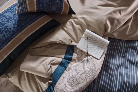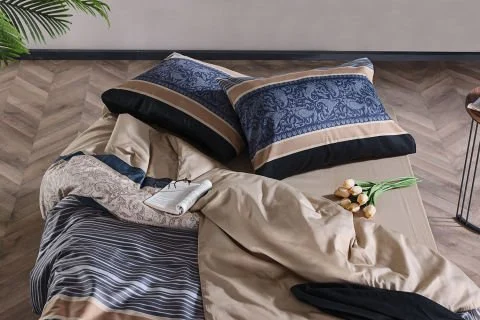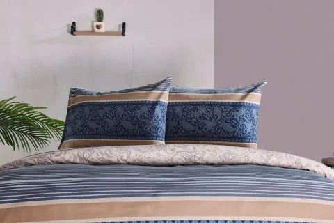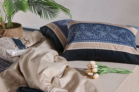 100% памучна сатенска текстура, мек и елегантен комплет постелнина во природна беж нијанса.
