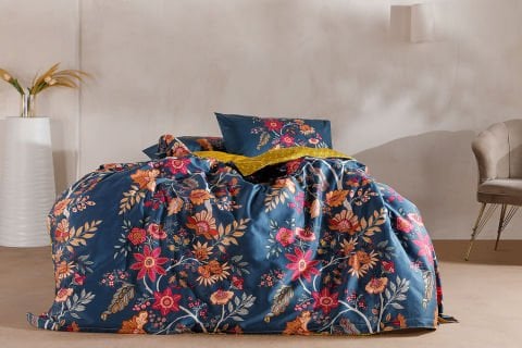 100% памучен сатен со текстура, во живи зелени нијанси и со цветен дезен, елегантен двоен постелни комплет.