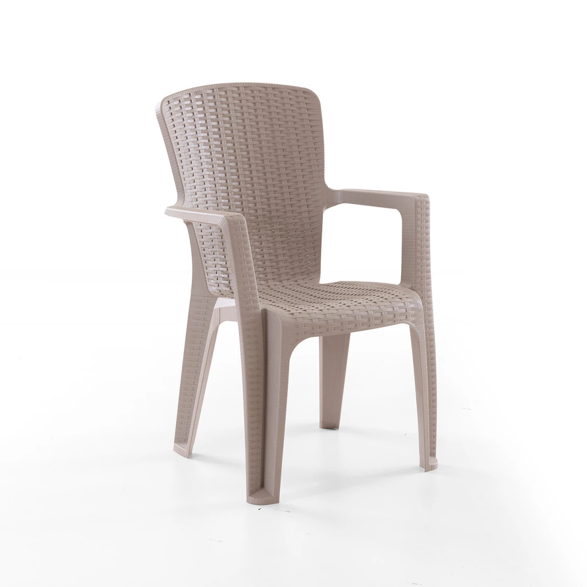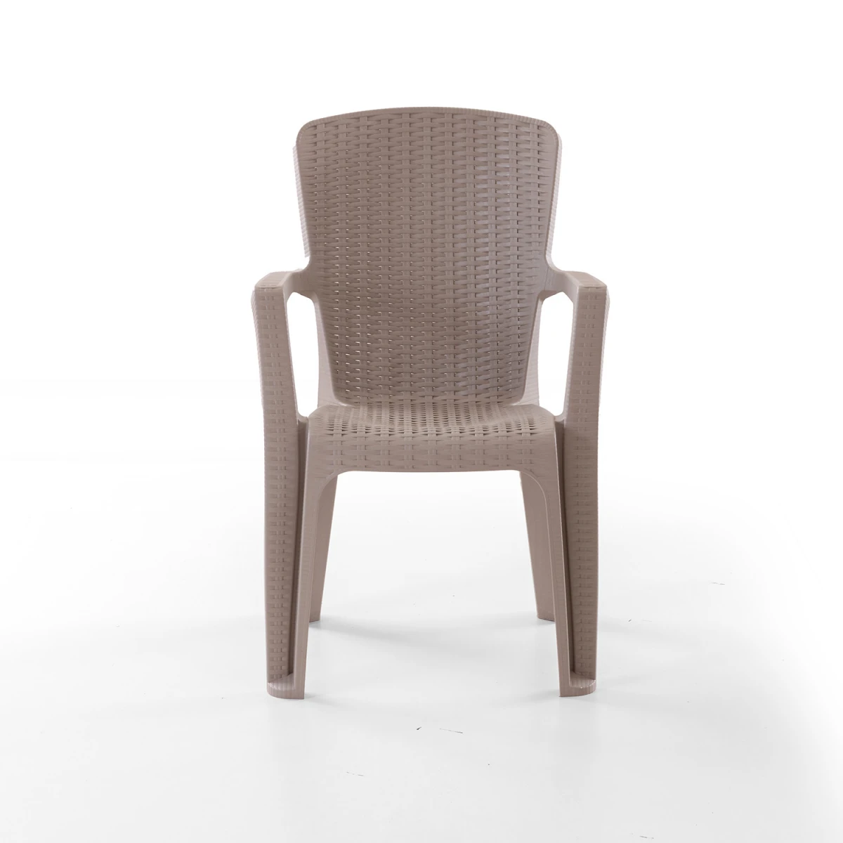 Стилскиот сет столици во боја Капучино со изглед на ратан е изработен од издржлив полипропилен материјал и е погоден за надворешна употреба. Обезбедува удобно седење и лесен е за чистење. Се испорачува во сет од 4 столици.