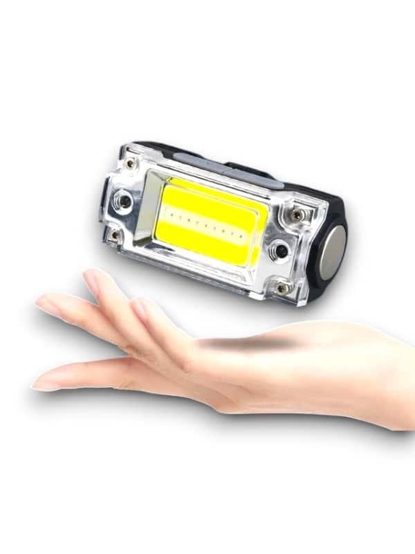 Должина 10 см 3 см. Светлосна Карактеристика: XPE95LM – + COB 120 LM LED. Светлосно растојание: 50 м 150 м. Светлосна боја: Бела. Време на работа: 4-8 часа. Лумен: 215 Лумен. Материјал на тело: Цврст Пластика. Начин на користење: Точкова и Широка Осветленост. Карактеристики на користење: Лесно фиксирање со флексибилна гума, Ротирачка глава + Магнетно фиксирање.