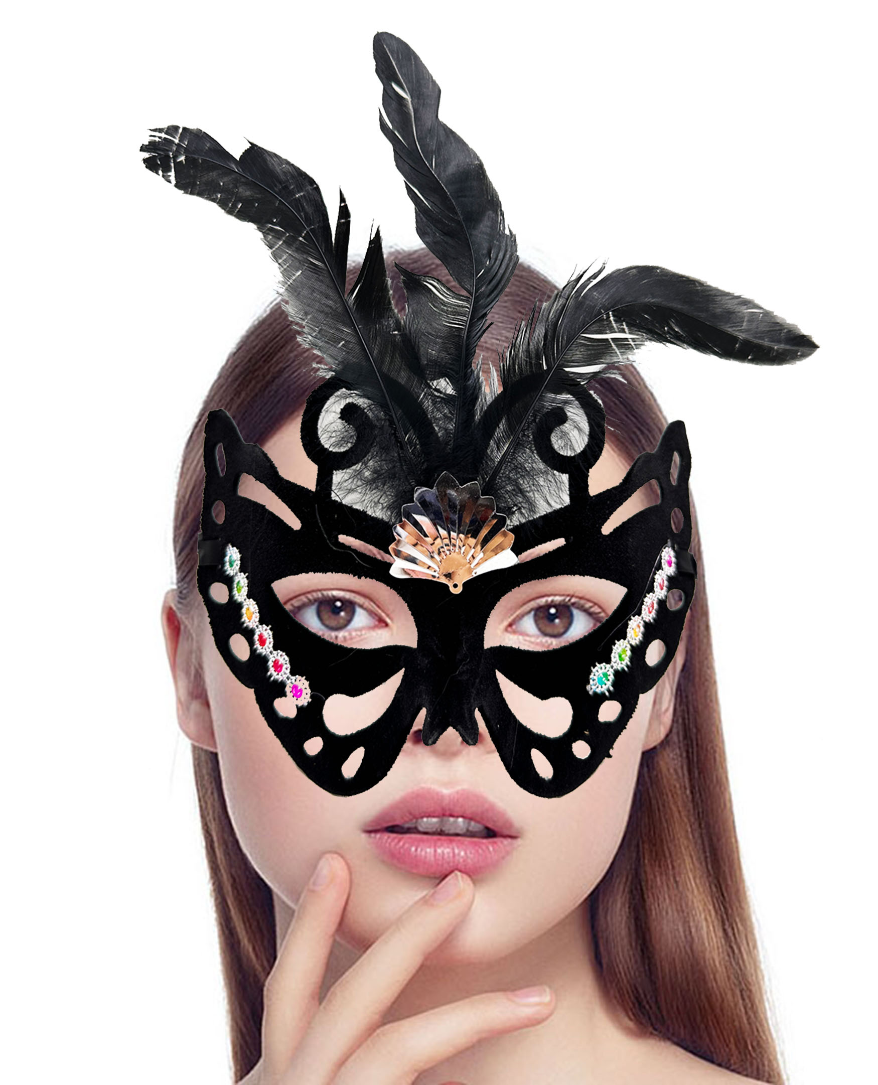 Со димензии од 24×18 см, таа е идеална за костумски и бални настани, а прилагодливата еластика обезбедува удобно носење.