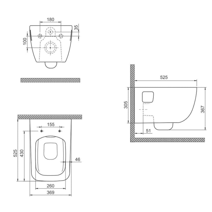 - 1. Туркуаз Aqua Rimless Надворешно Вештачко Клозет SET007001